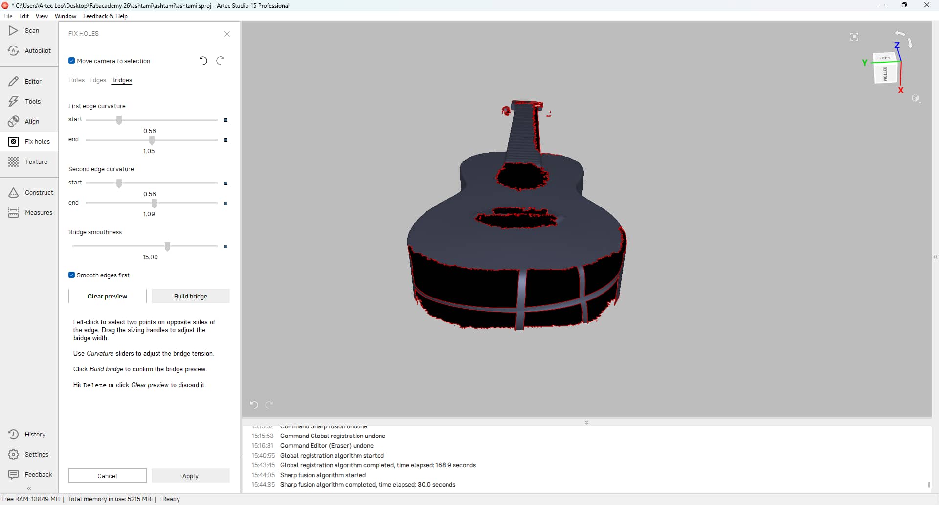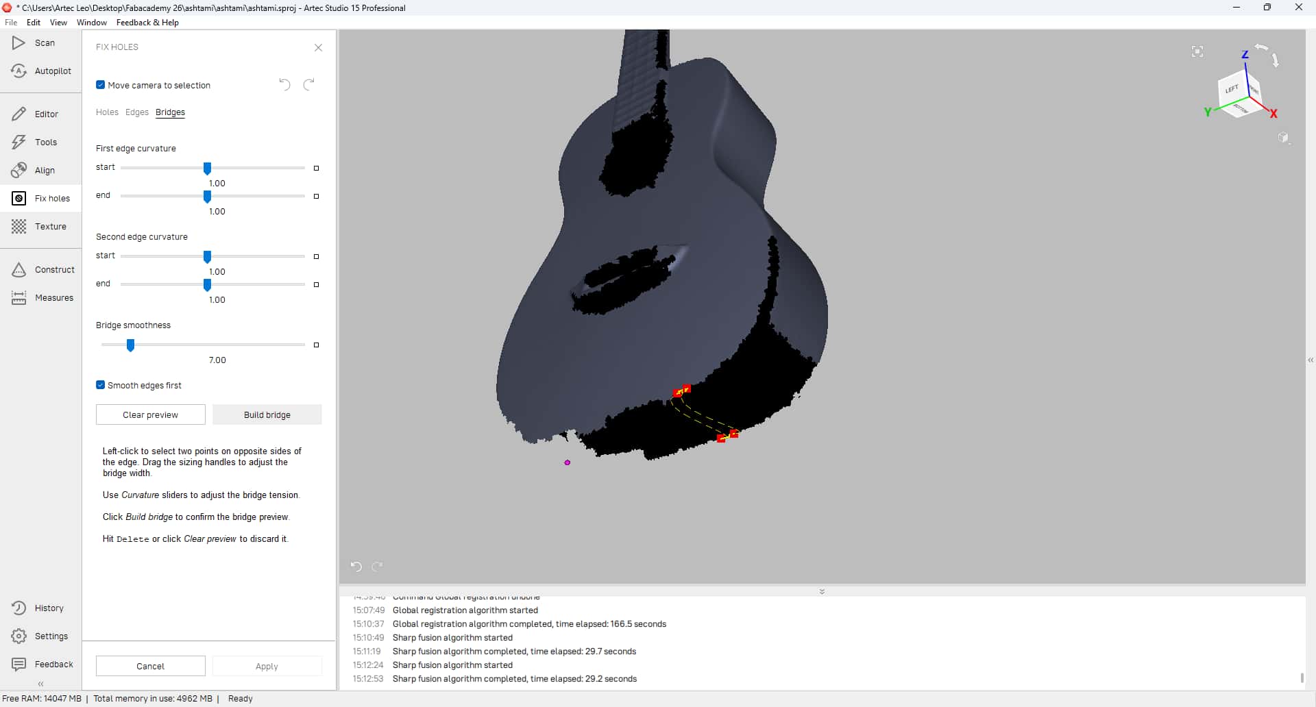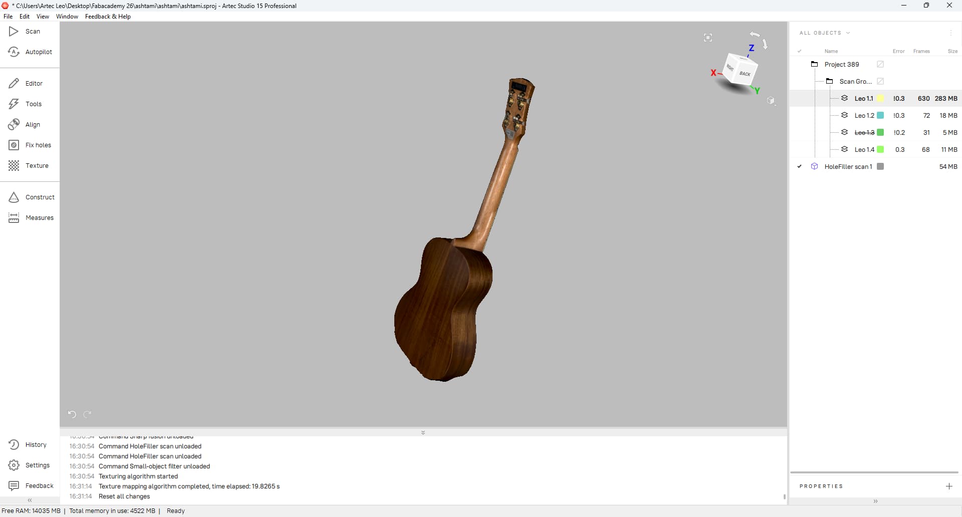 I used the texture fusion tool to apply the colors and textures from the scan onto the 3D model, resulting in a more lifelike representation of the ukulele.