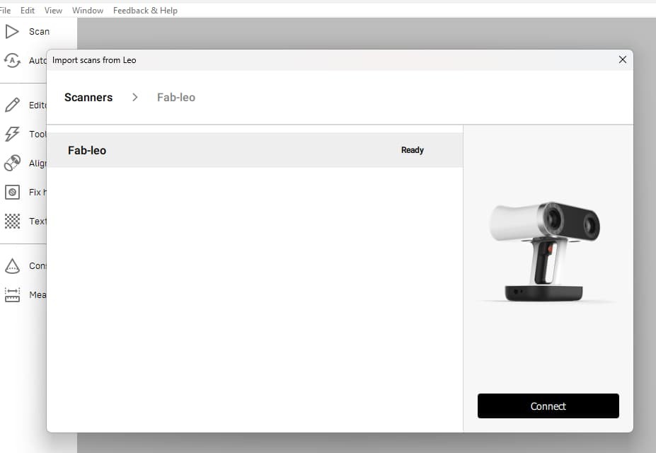 For this process, used the artec studio software; for importing the scan data, scanner can be connected in two ways; either by wifi or by connecting the scanner to a computer using a cable.