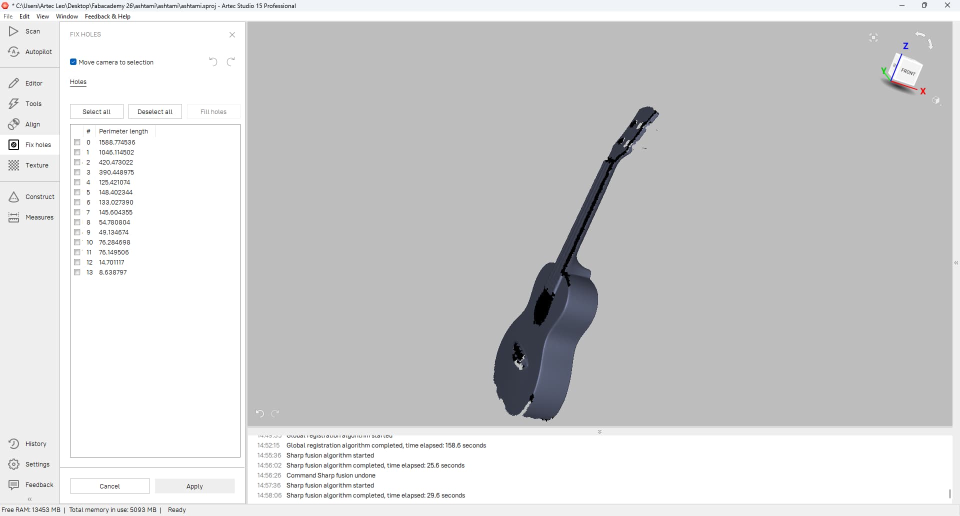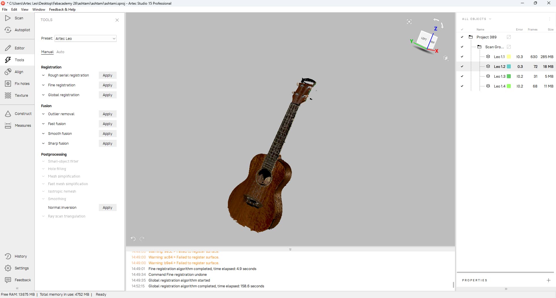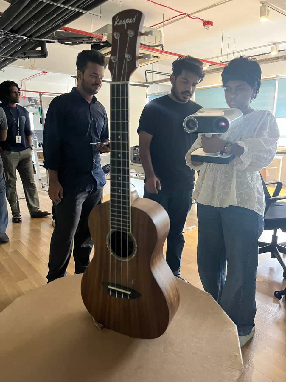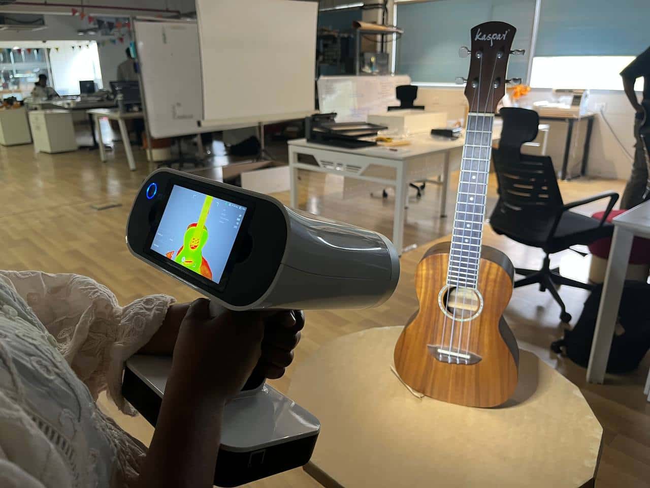 During scanning, we had to move the scanner around the ukulele to capture all angles and details.