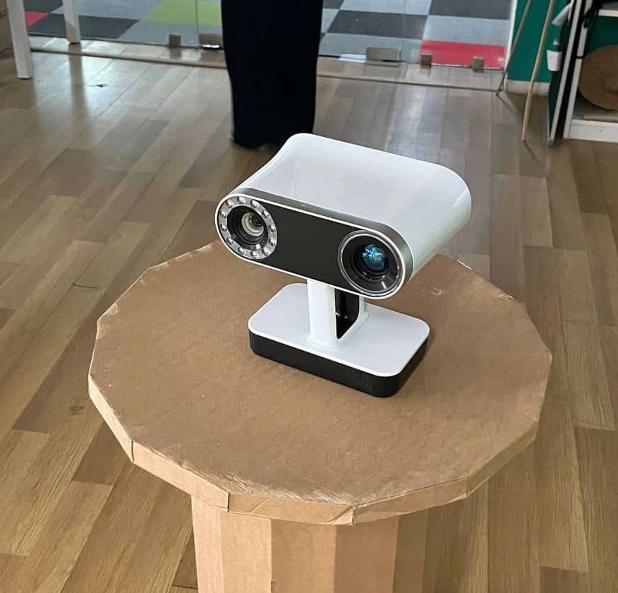 It works using structured light technology, projecting a light pattern onto the object while built-in cameras record how the pattern deforms to calculate depth and geometry in real time.