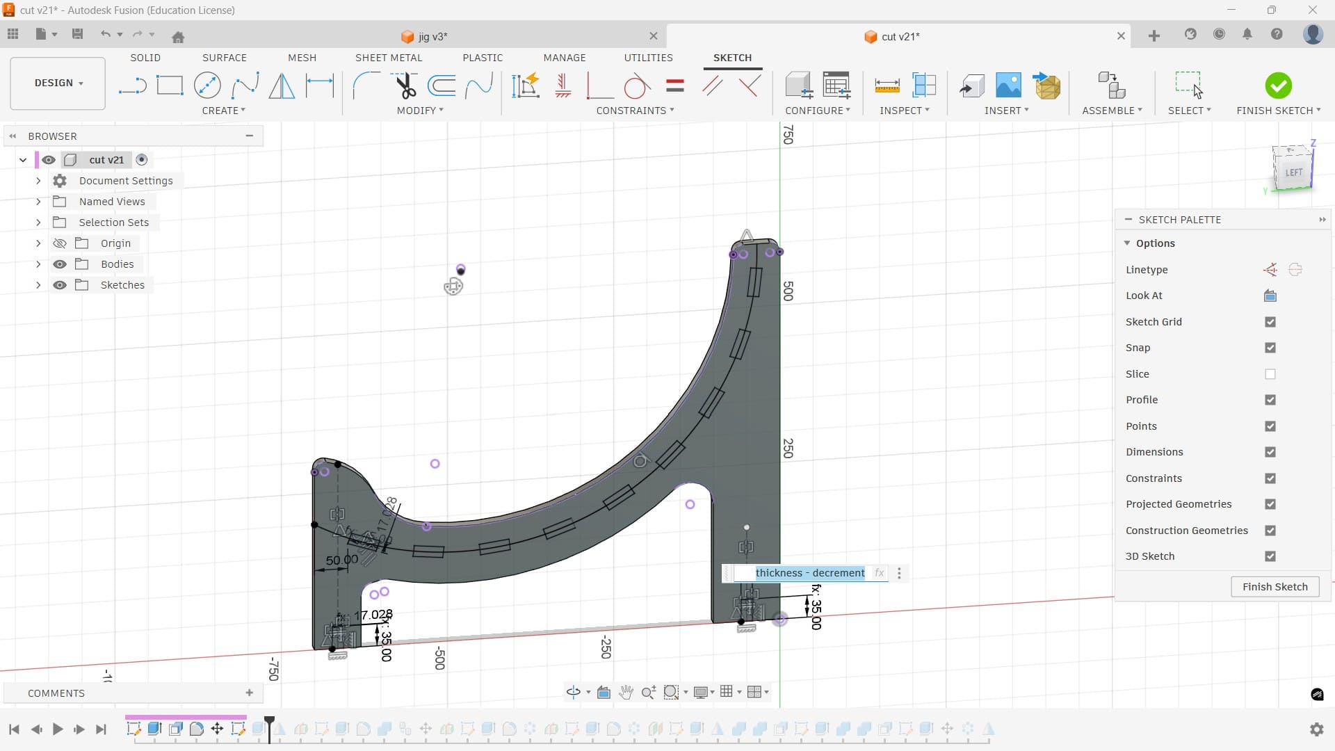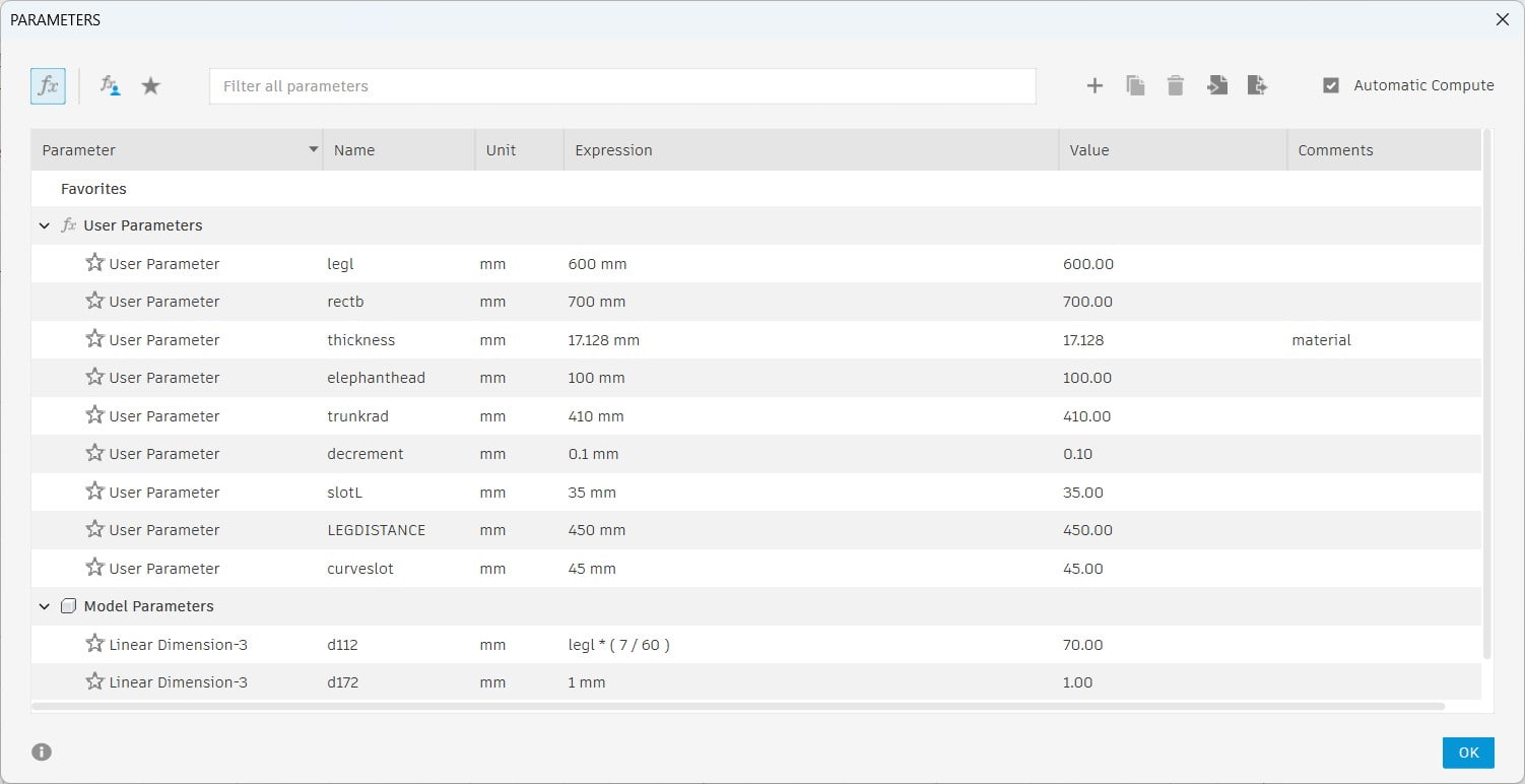 To manage this, I made the material thickness parametric in Fusion. This allows me to change the thickness anytime without disturbing the overall design.