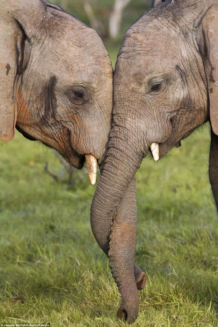 These trunk-like forms extend and connect to the other leg and the footrest, visually representing two elephants standing close with their trunks twisted together.