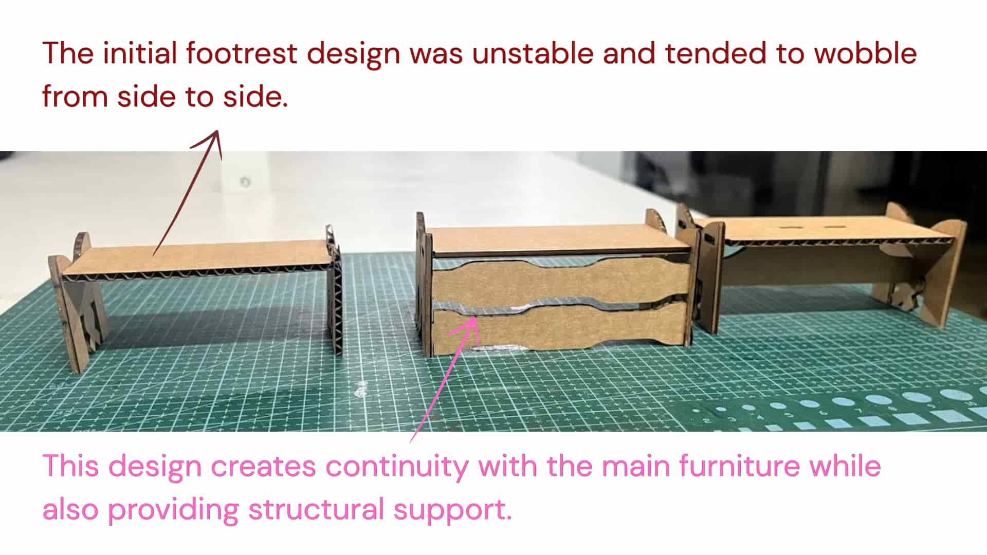 One important constraint, and a key learning, was that we could not use fasteners like screws or nails. All the parts had to be assembled using only joints.