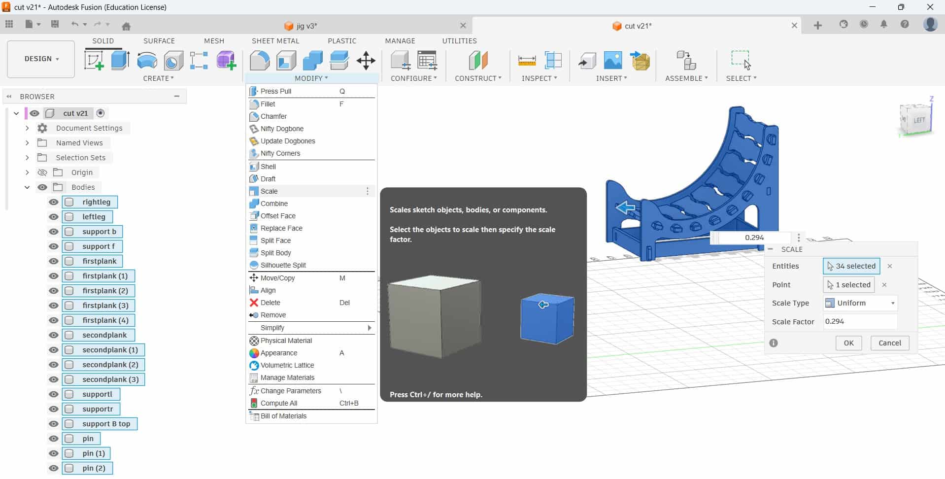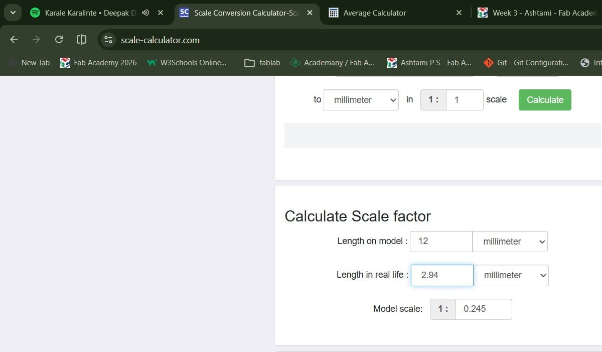 After measuring the cardboard at multiple points, I calculated an average thickness of 2.94 mm. I used this value to find the scale ratio for reducing the model from 12 mm to 2.94 mm. The calculated scale factor was entered into the Scale tool in Fusion 360, and the thickness parameter was then adjusted to 3 mm.