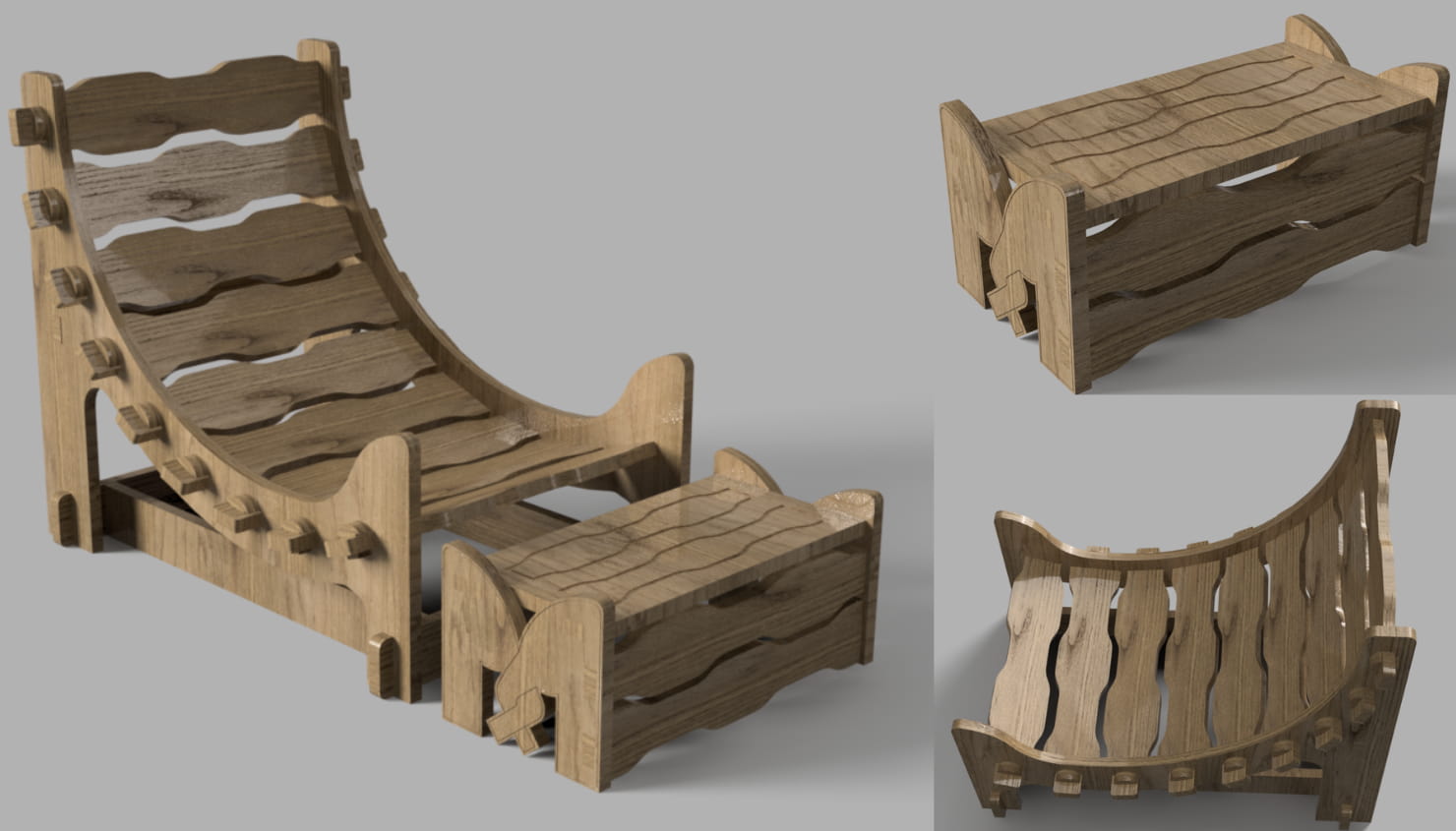 I created the furniture model in Fusion 360 and worked on making it parametric so it could adapt to different machines and materials.