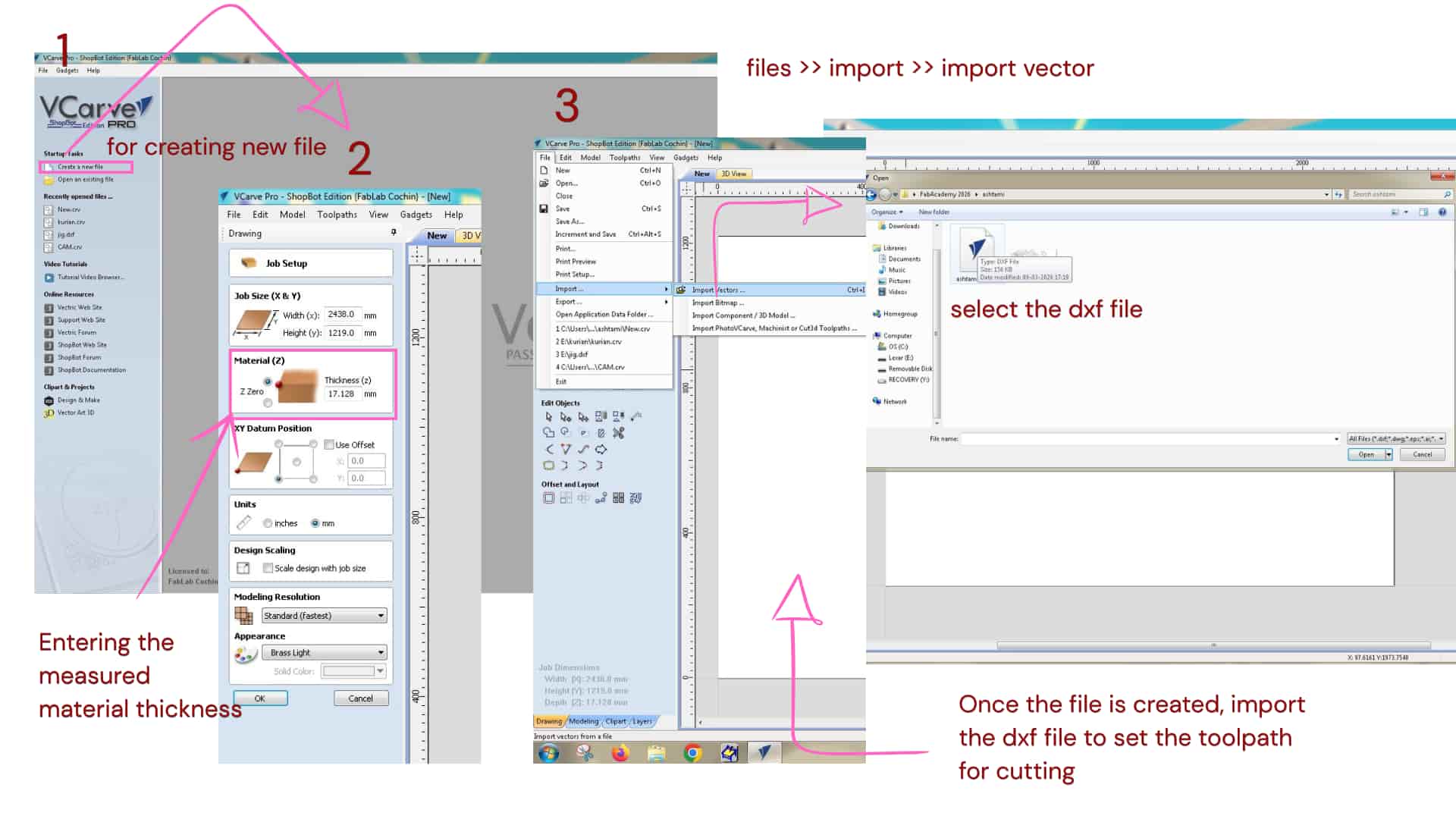 We used VCarve software to perform the CAM process and generate the toolpaths for CNC machining.
