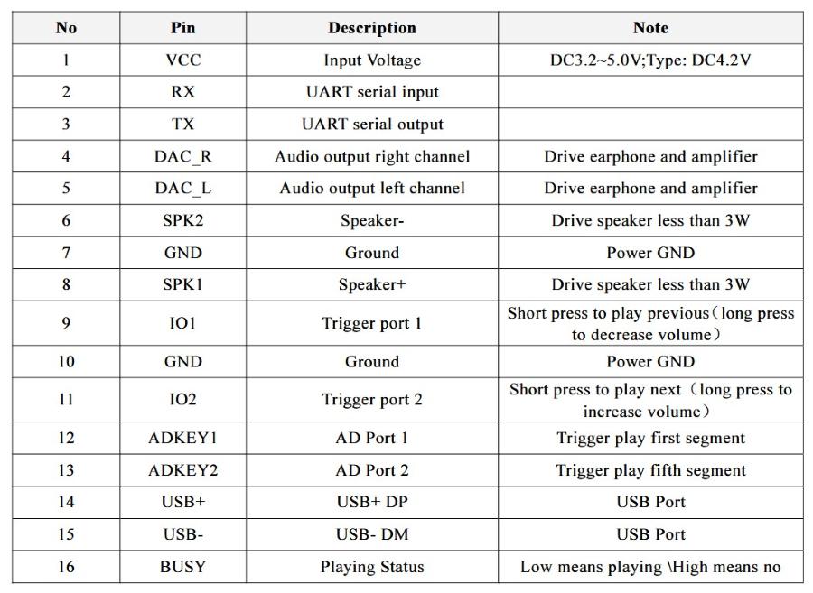 Source: DFPlayer wiki DFRobot