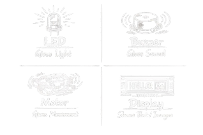 anything that takes signals from a microcontroller and produces a visible or physical result.