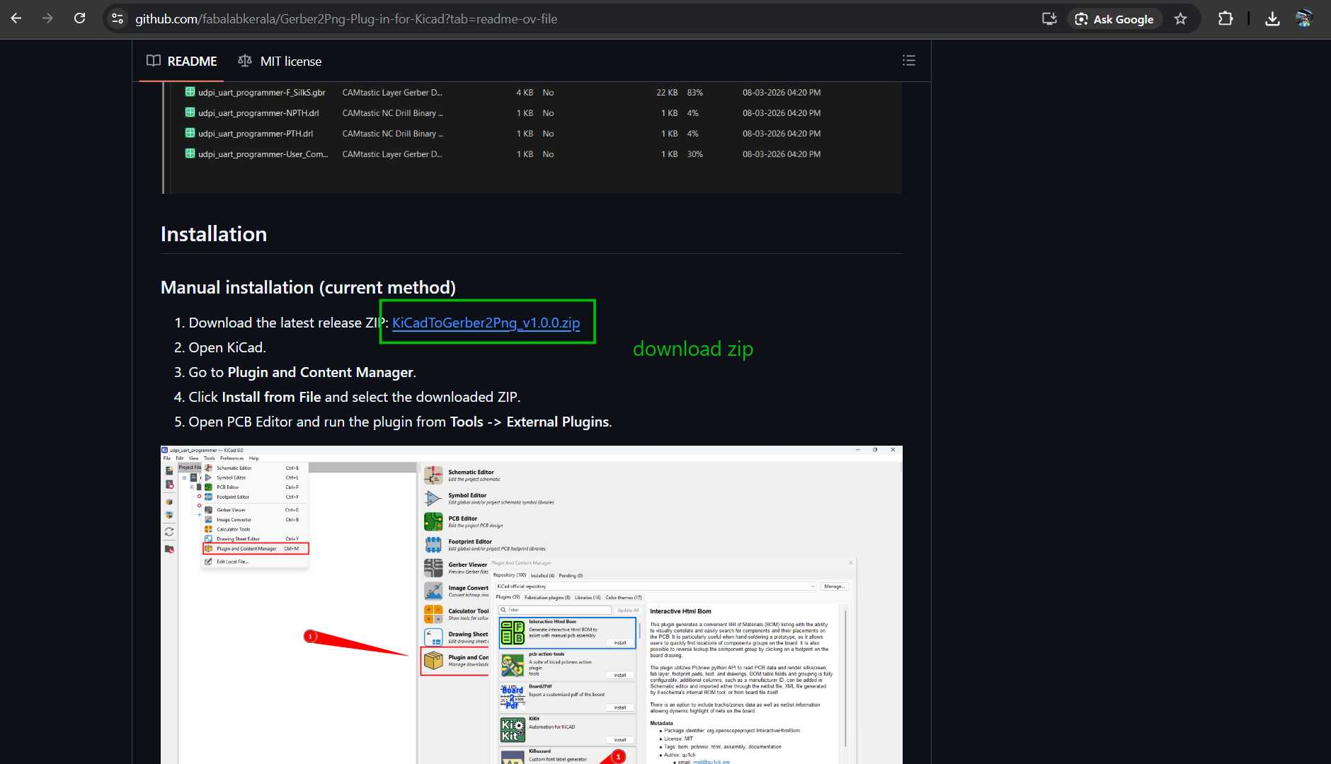 Download the ZIP files for the Gerber2PNG KiCad extension.