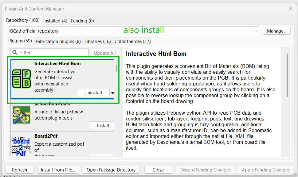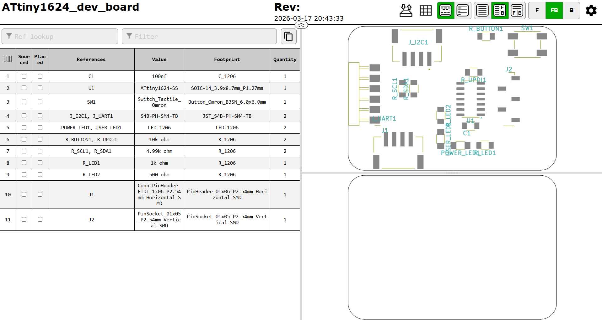 BOM (Bill of Materials): list of components presently being used in KiCad.