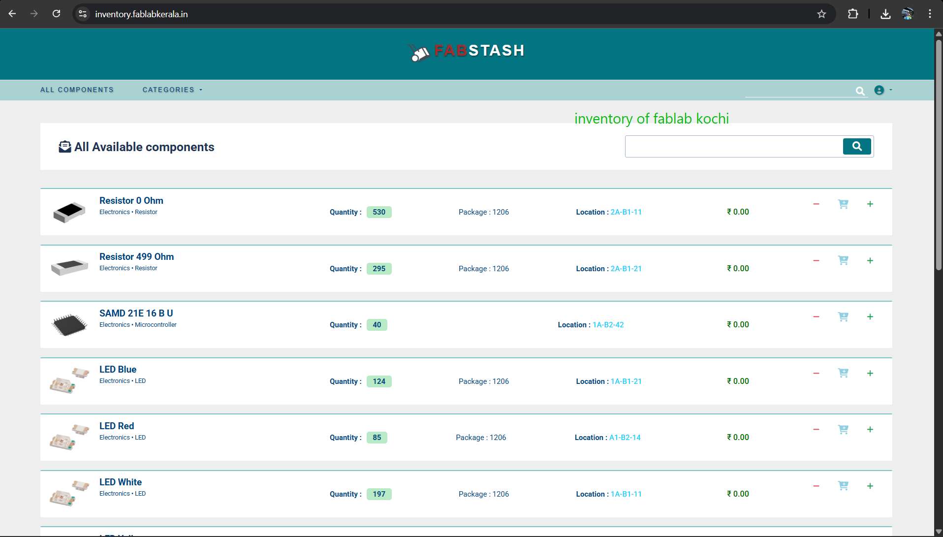 List of components presently available in the inventory.