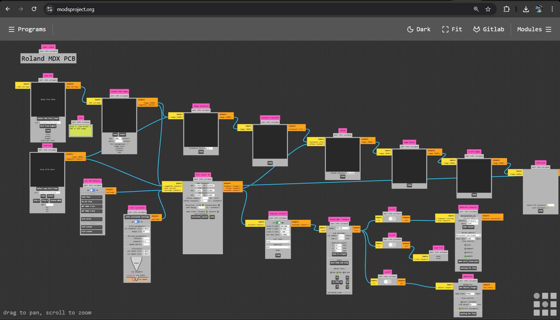 Using the Gerber2PNG plugin, the entire process is made very streamlined. We can move forward to milling on the Roland MDX PCB mill very quickly. We will be using MODS.