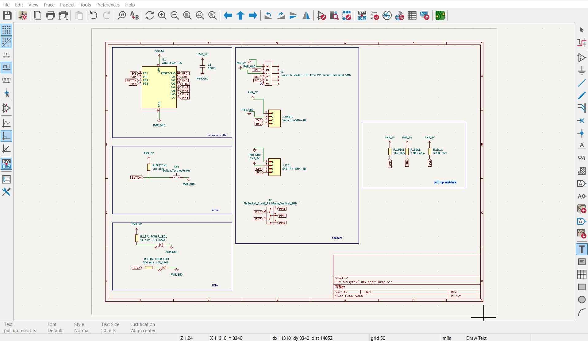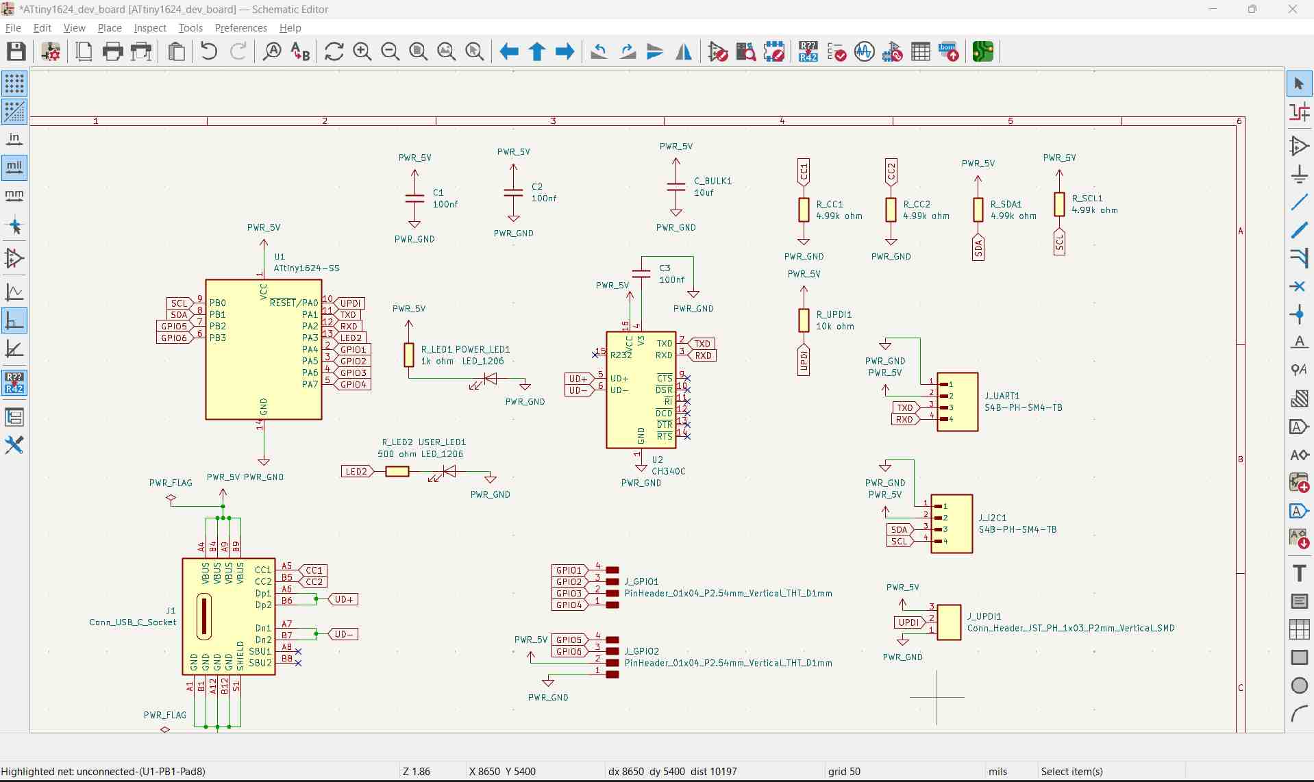 For constructing the development board, I will be focusing mainly on various communication protocols like I2C and UART, and also UPDI for programming.
