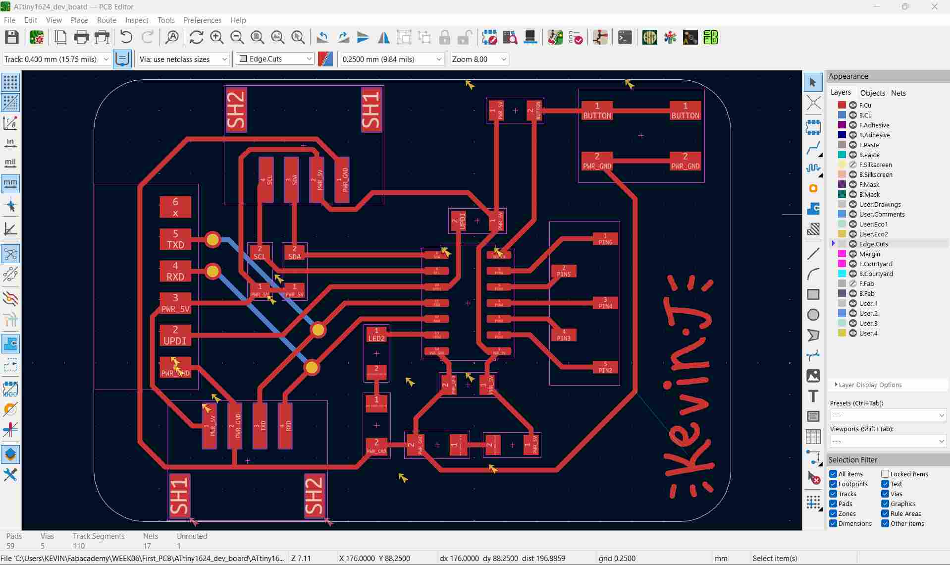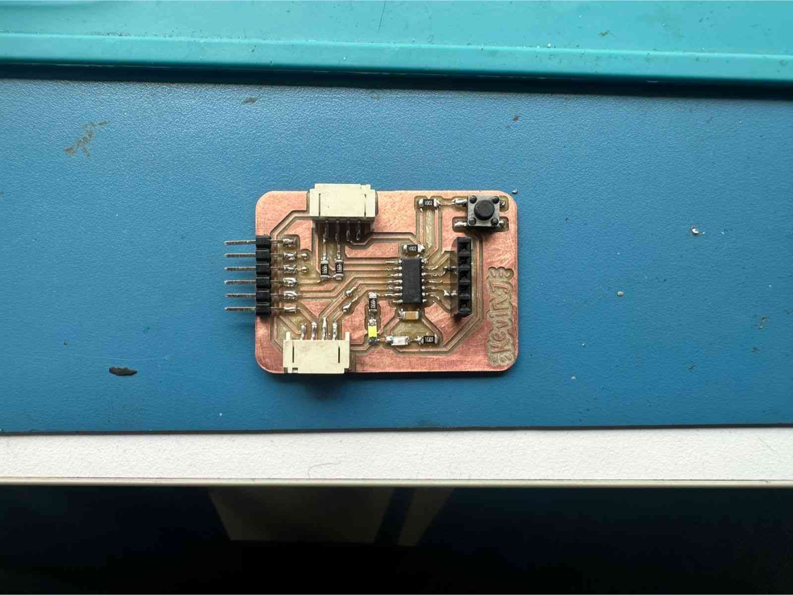 First I thought I’d go about making the dev board like this so it could be powered on its own, but I thought it could be programmed via serial like an Arduino. It can only be done using UPDI, so I scrapped this plan and just made a header.