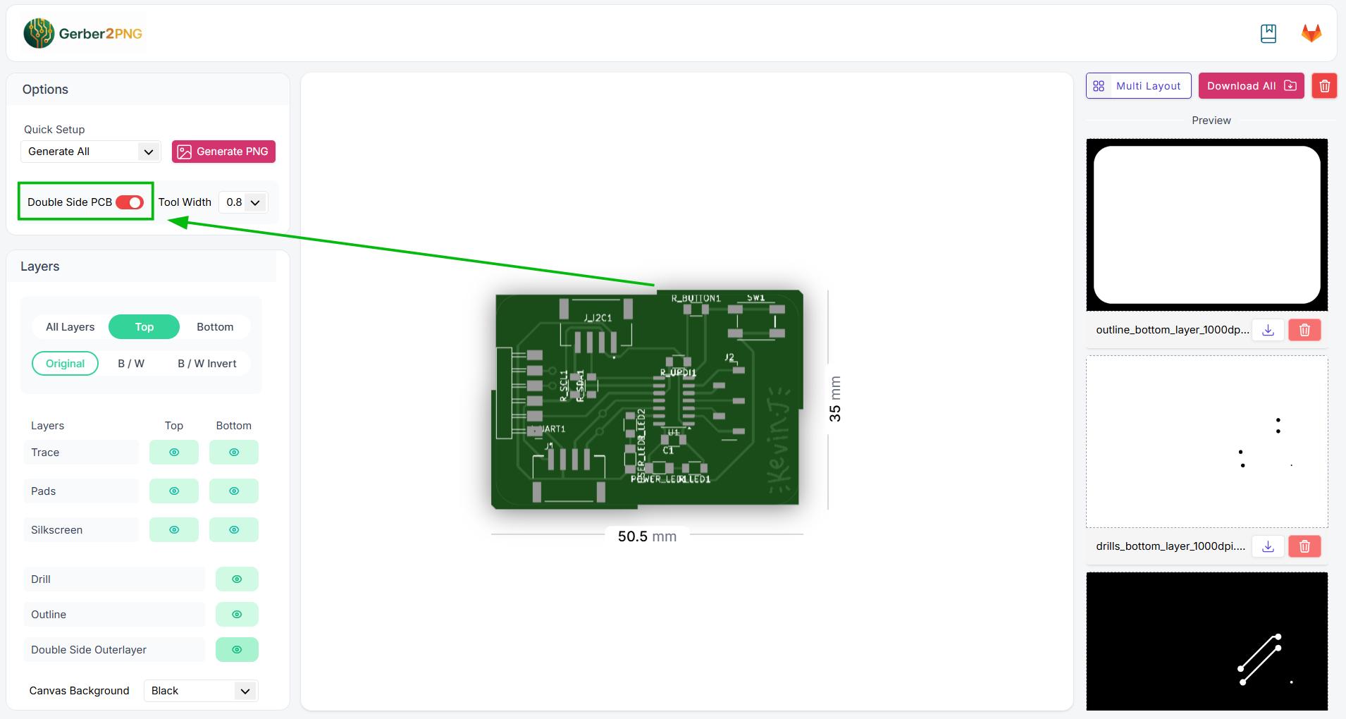 Now using the Gerber2PNG plugin we can easily get the PNGs.