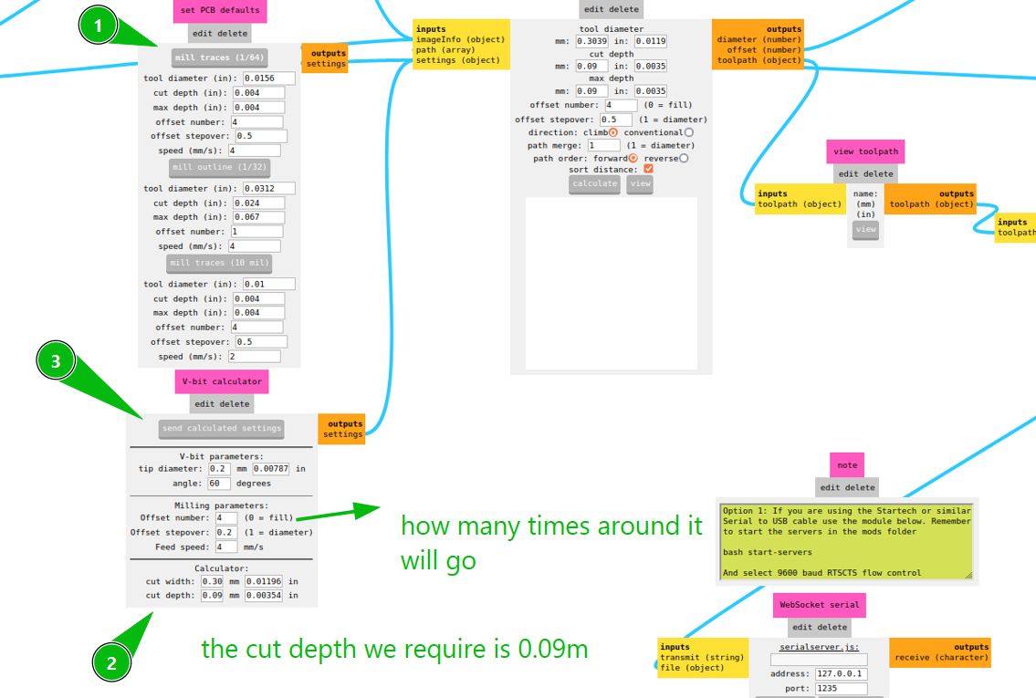 Set tool parameters using the V-bit calculator. Depth = 0.09, offset = 4.
