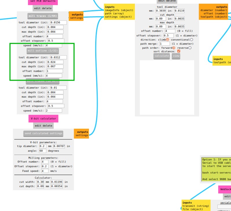 We are going to use two tools: the V-bit 0.2 mm tip end mill and the 1/32 (0.8 mm) end mill for drilling and outline.