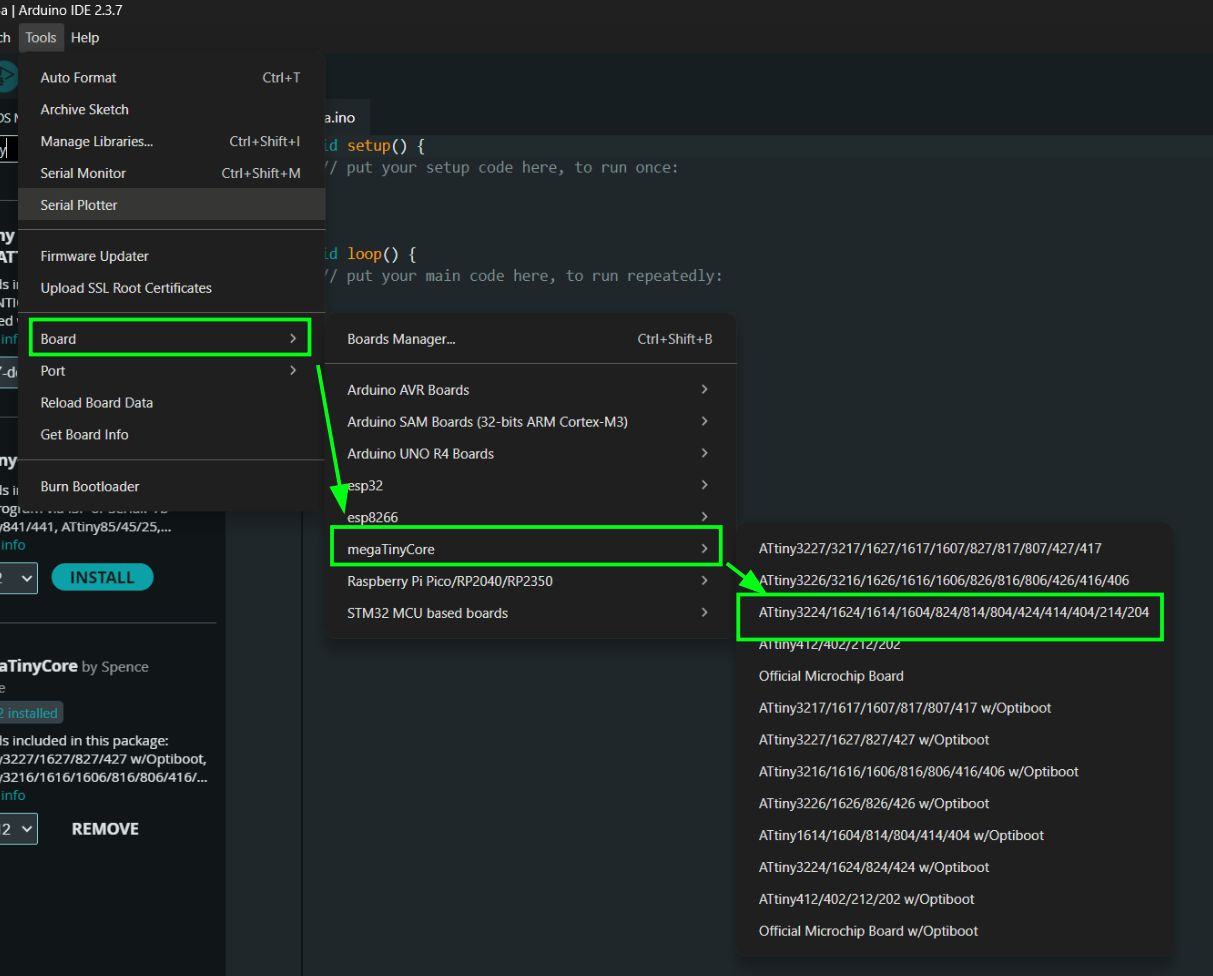 You can now choose the correct board. I used the ATtiny1624.