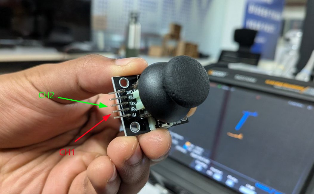 The joystick is powered using a 5V supply and internally consists of two 5 kilo-ohm potentiometers. As the joystick is moved along the X or Y direction, the resistance of these potentiometers changes, producing a corresponding voltage between 0 and approximately 5 volts.