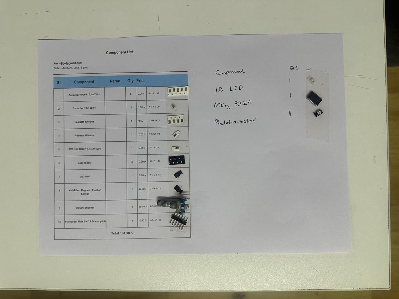 All required components were collected from the inventory and arranged before starting the soldering process.