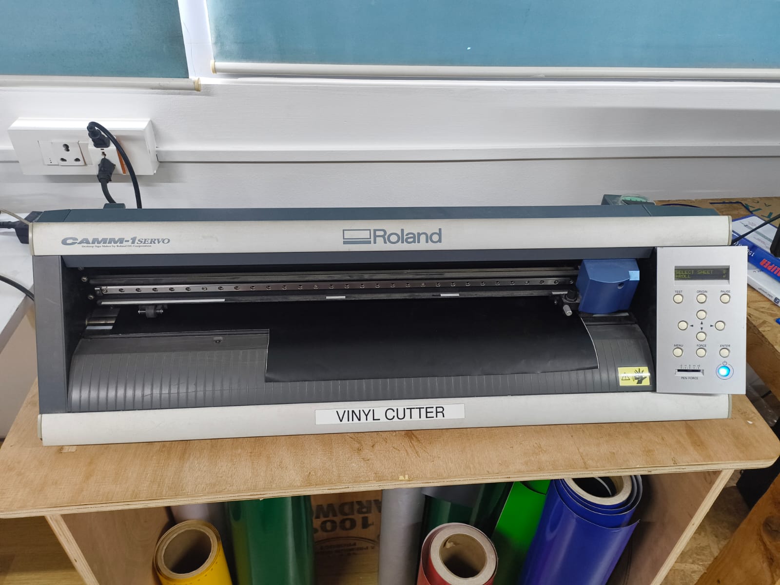 In our lab, we use the Roland GX-24 vinyl cutter, a servo-motor driven precision cutting machine designed for cutting vinyl, stickers, heat-transfer film, and other thin flexible materials.