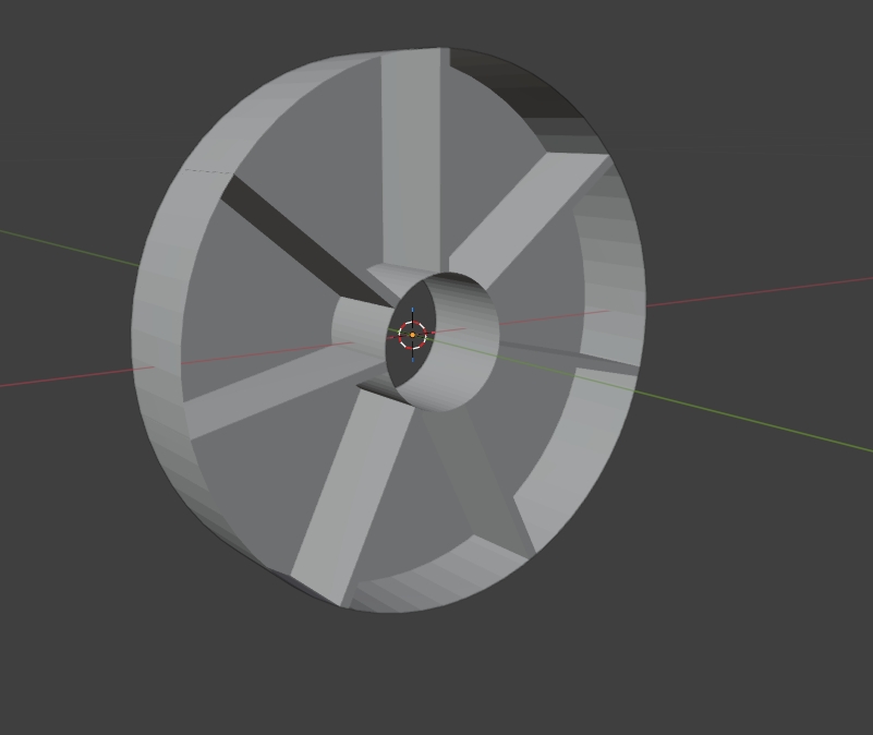- The three rotor discs were modelled as cylinders with 7 equal wedge-cuts to create the compartments.