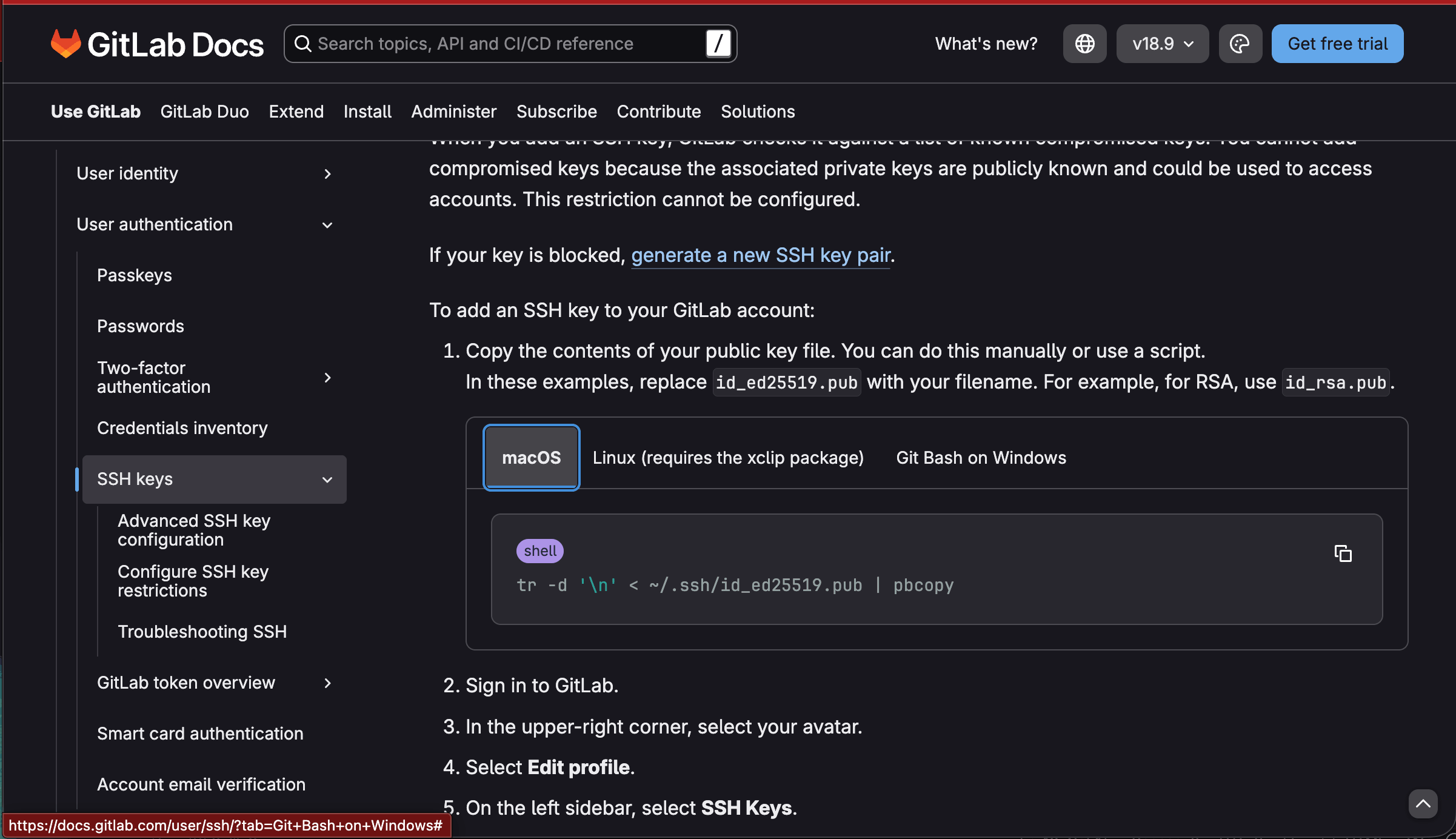 I had to first install homebrew through the terminal on my system - Macbook Air, to run Git, after which we added an SSH key to GitLab. Once Git is installed, we need to generate a SSH Key for files uploading.