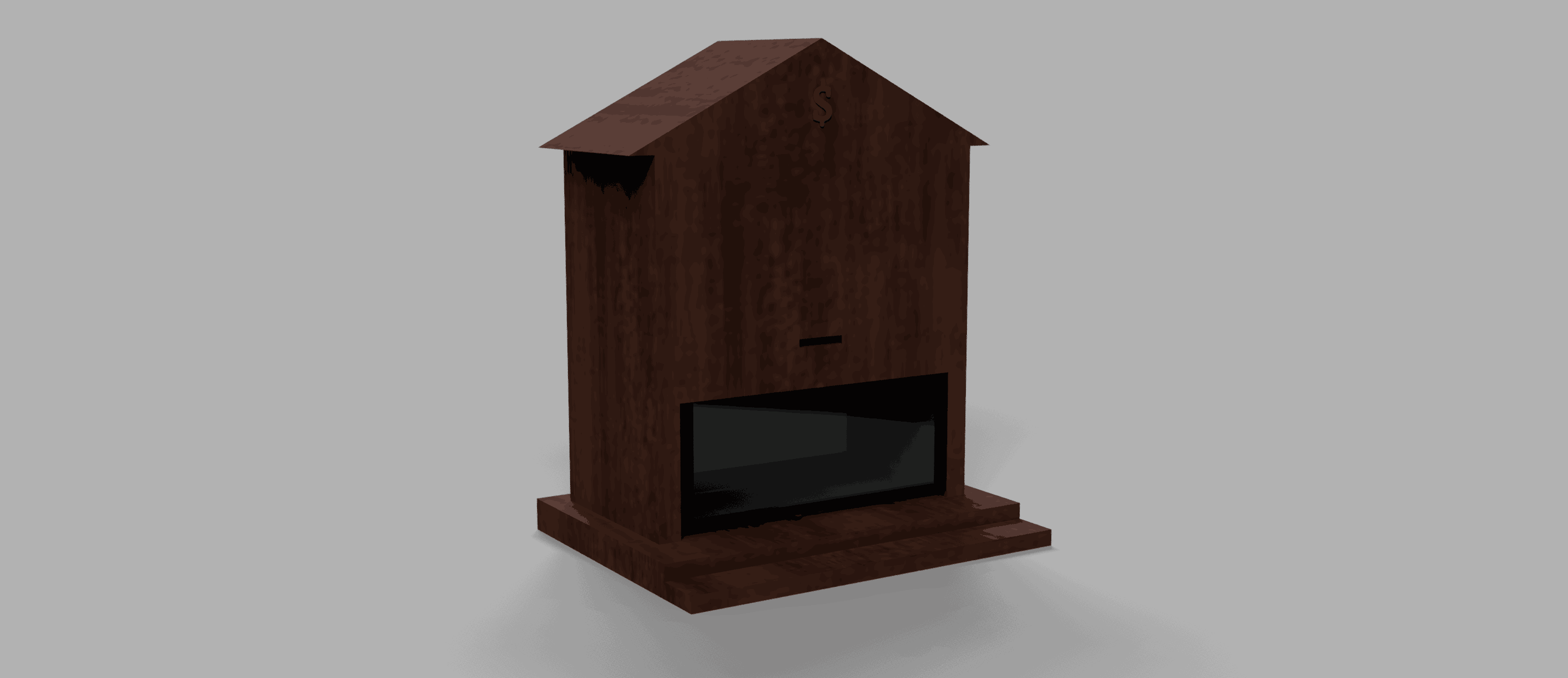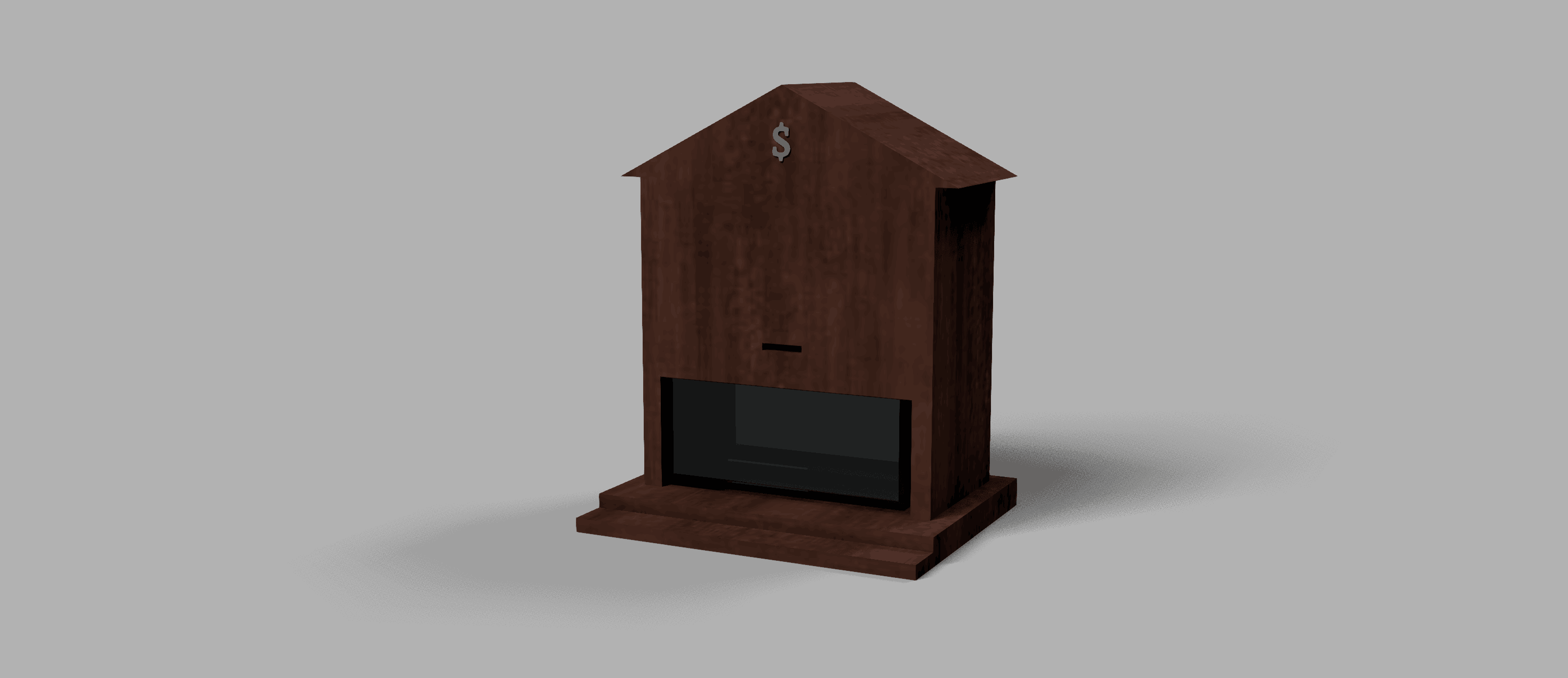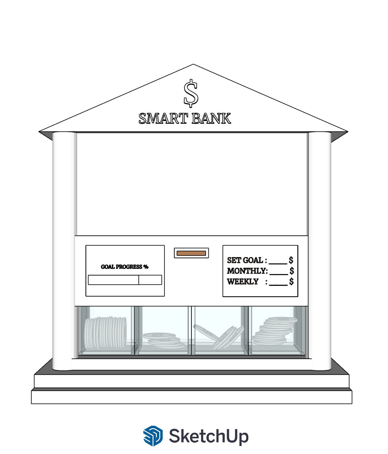 From the initial sketches I made, I had a rough idea of what the model should eventually look like. I started with a basic rectangle in SketchUp and extruded it to create a plinth, then used an offset to define the walls. I later extruded the walls on three sides, excluding the front. I made small containers to hold coins, which I created by extruding a circle. On top of the coins, I used the 3D Text Maker tool to add a dollar sign. I extruded the outer border of the circle with a slight offset to give it a more coin-like feel. Afterward, I made several copies of the same coin, adjusted their orientation using the Rotate tool, and stacked them in different ways in each container to show randomness.