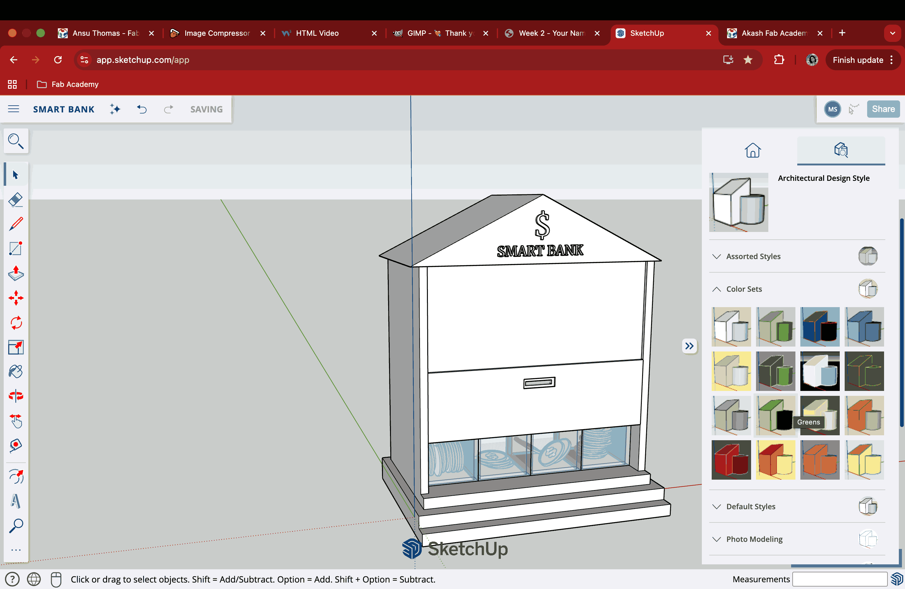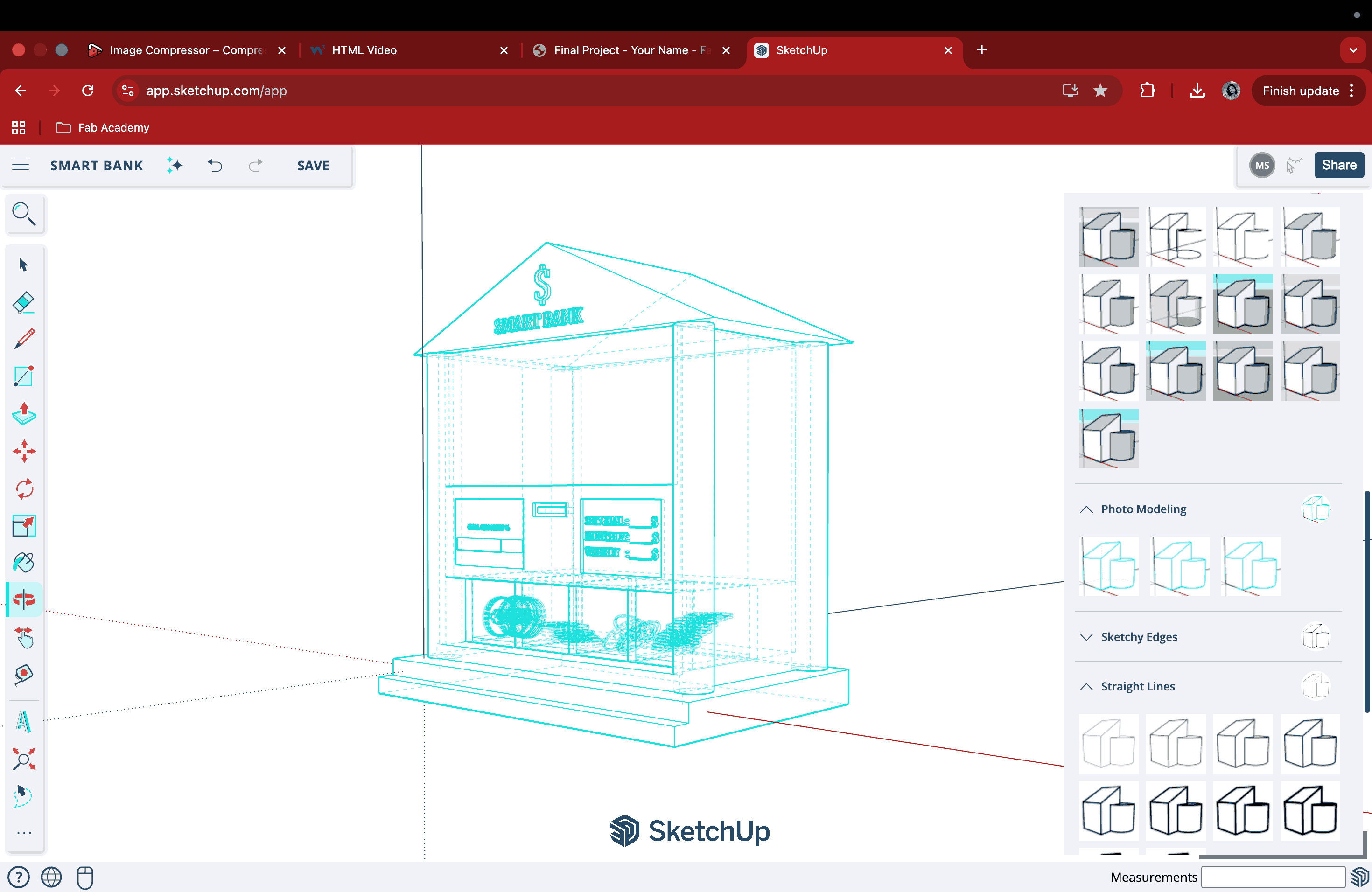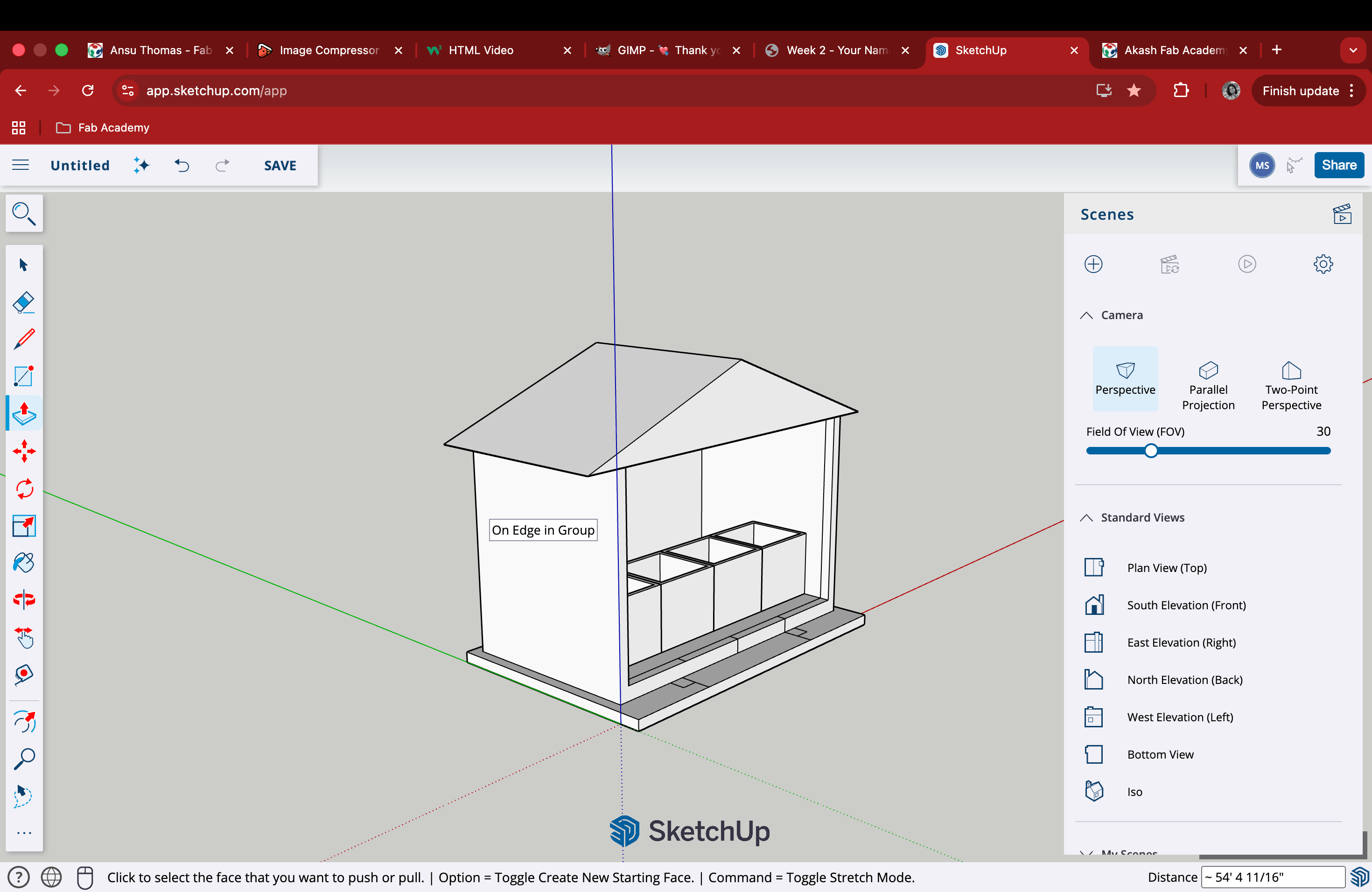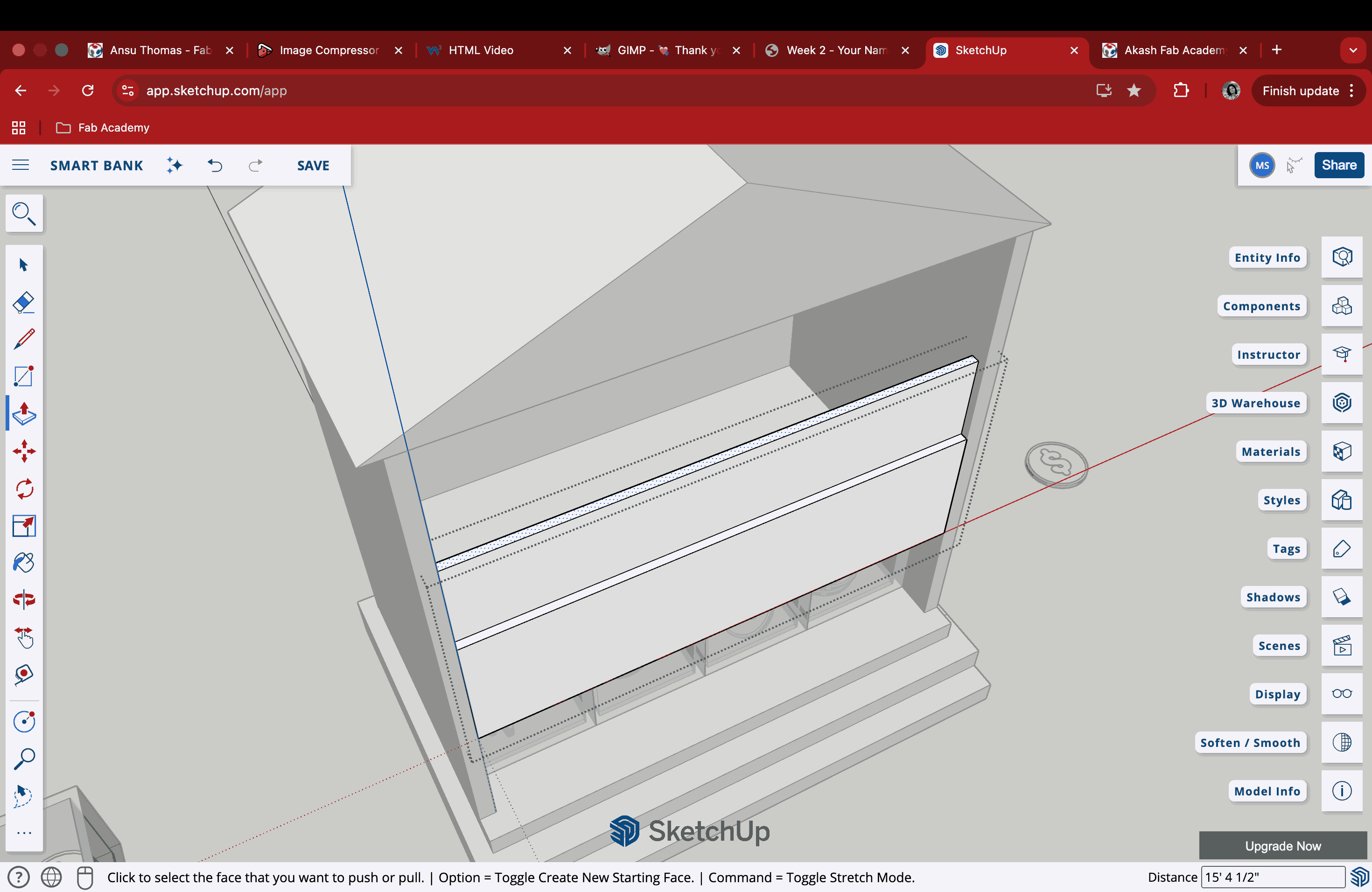 Since it was my first time using Fusion 360, I couldn’t figure out the basic functions or keep up with the pace of working within a day, which eventually became frustrating. Afterward, I decided to model my previous sketch using the free web version of SketchUp. For the time being, this is where I’m able to work faster, but in the coming weeks, I plan to try my hand at Fusion again for better results.
