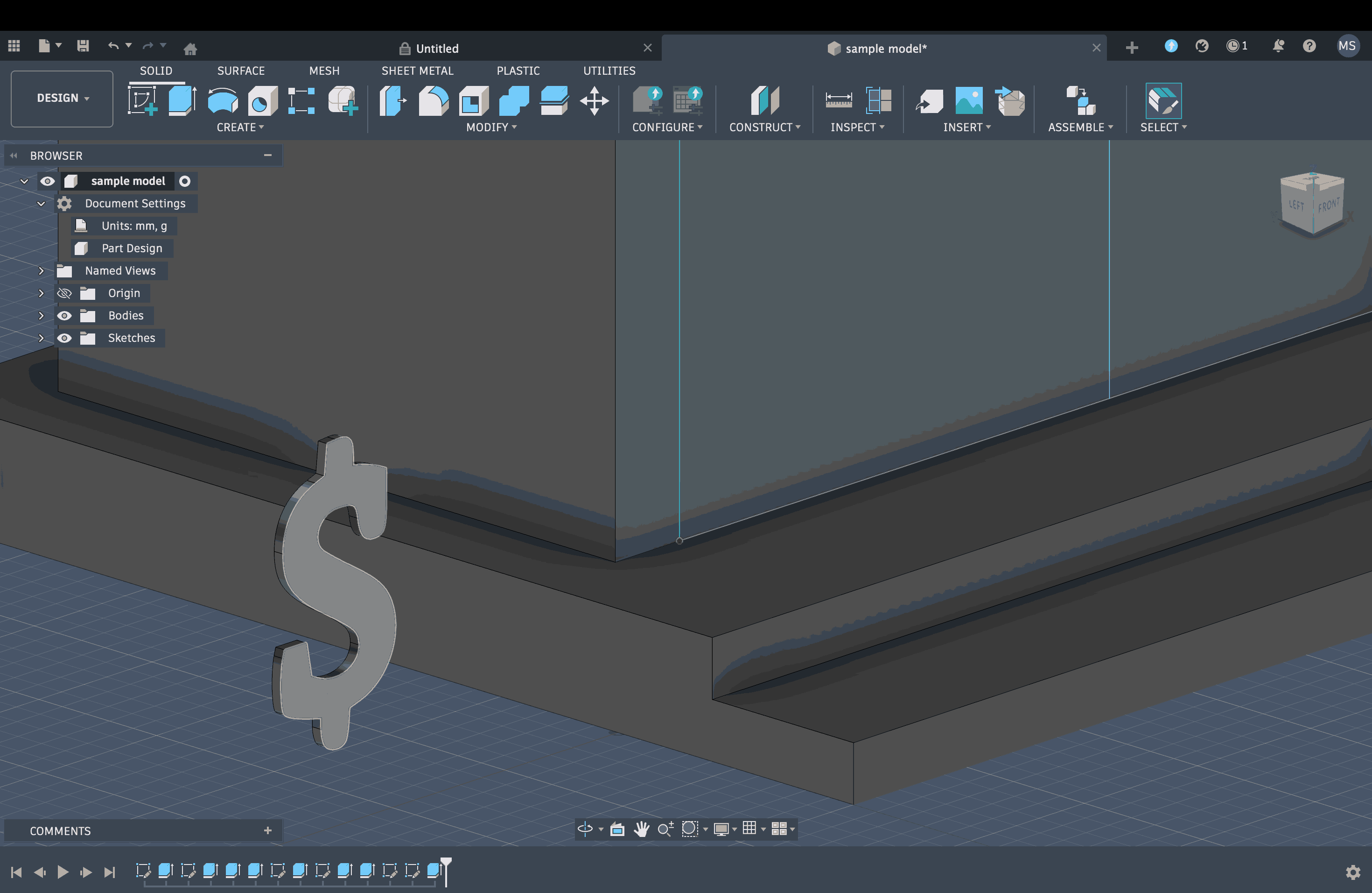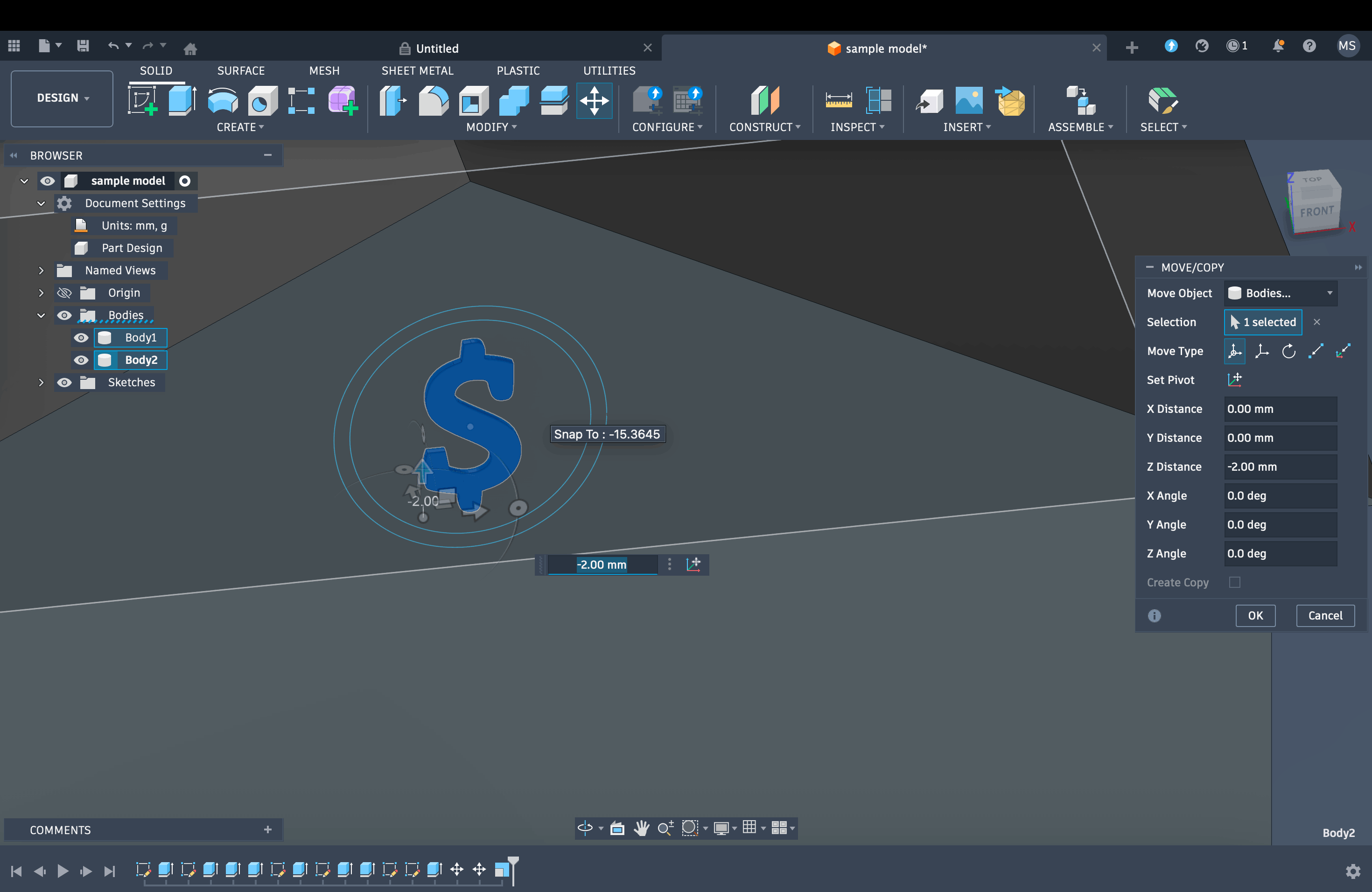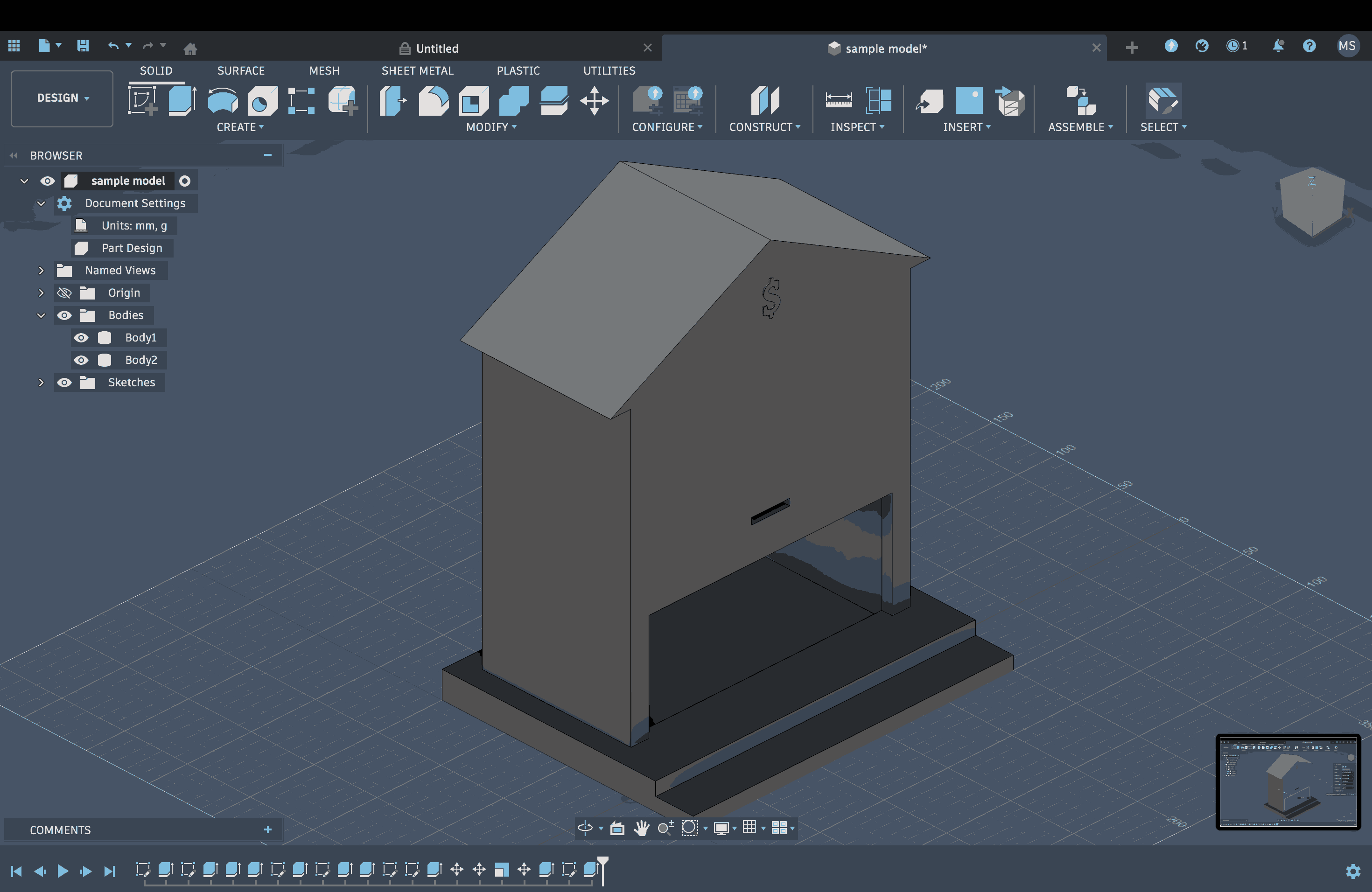 I had already tried sketching my final project model on paper and on SketchUp first, so I had a better idea of what I was trying to replicate in Fusion, even with my bare minimum knowledge of how this software works. The interface is actually quite self-explanatory, but the whole body-sketch-solid relationship is still confusing to me. I still haven’t figured out how layering works or how to move between things seamlessly. Some options feel very limiting or restrictive, but somehow, things still make sense in the end. That’s why I say it’s a love-hate relationship, I don’t fully know how it works yet, but it works for now.