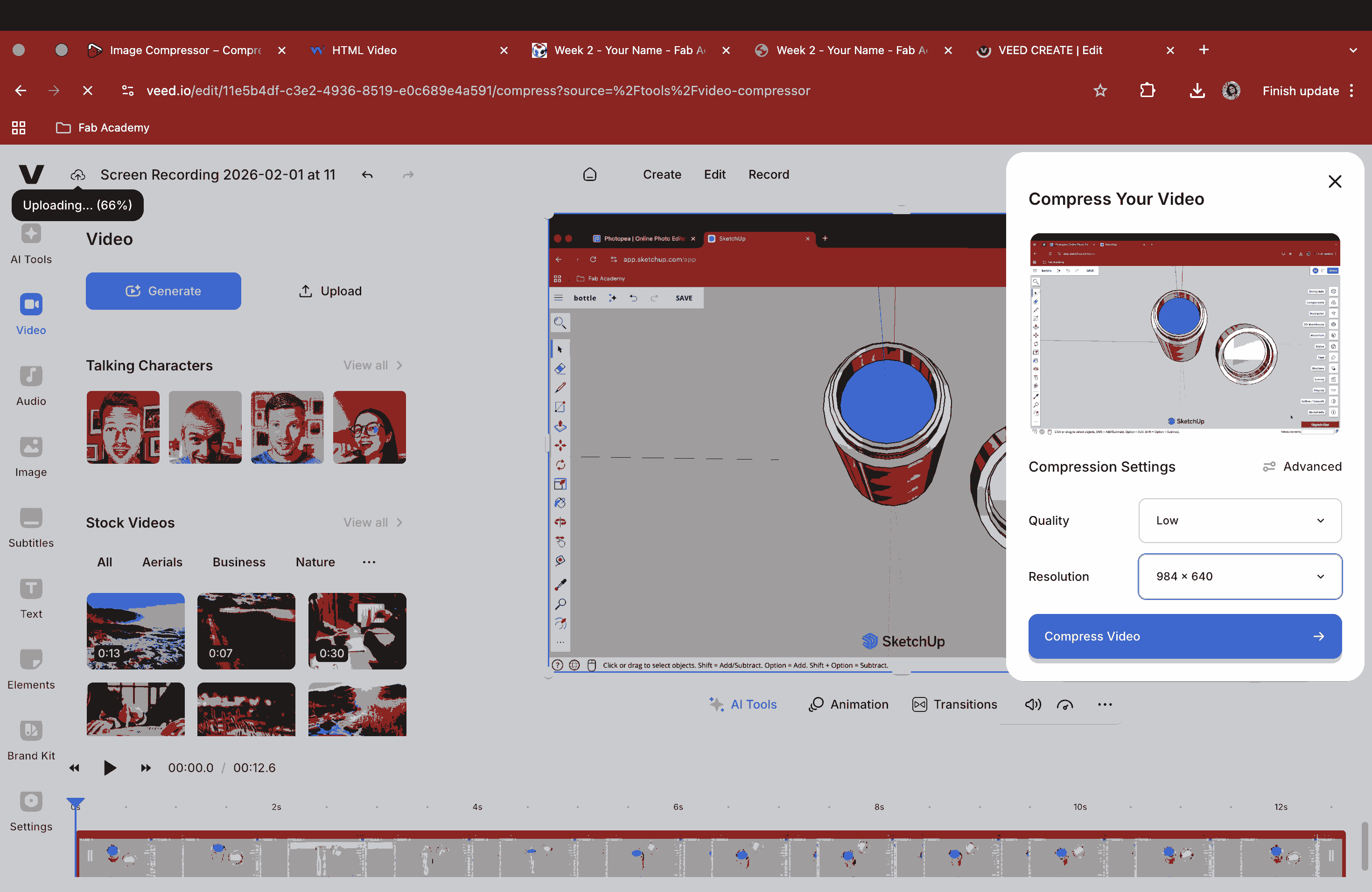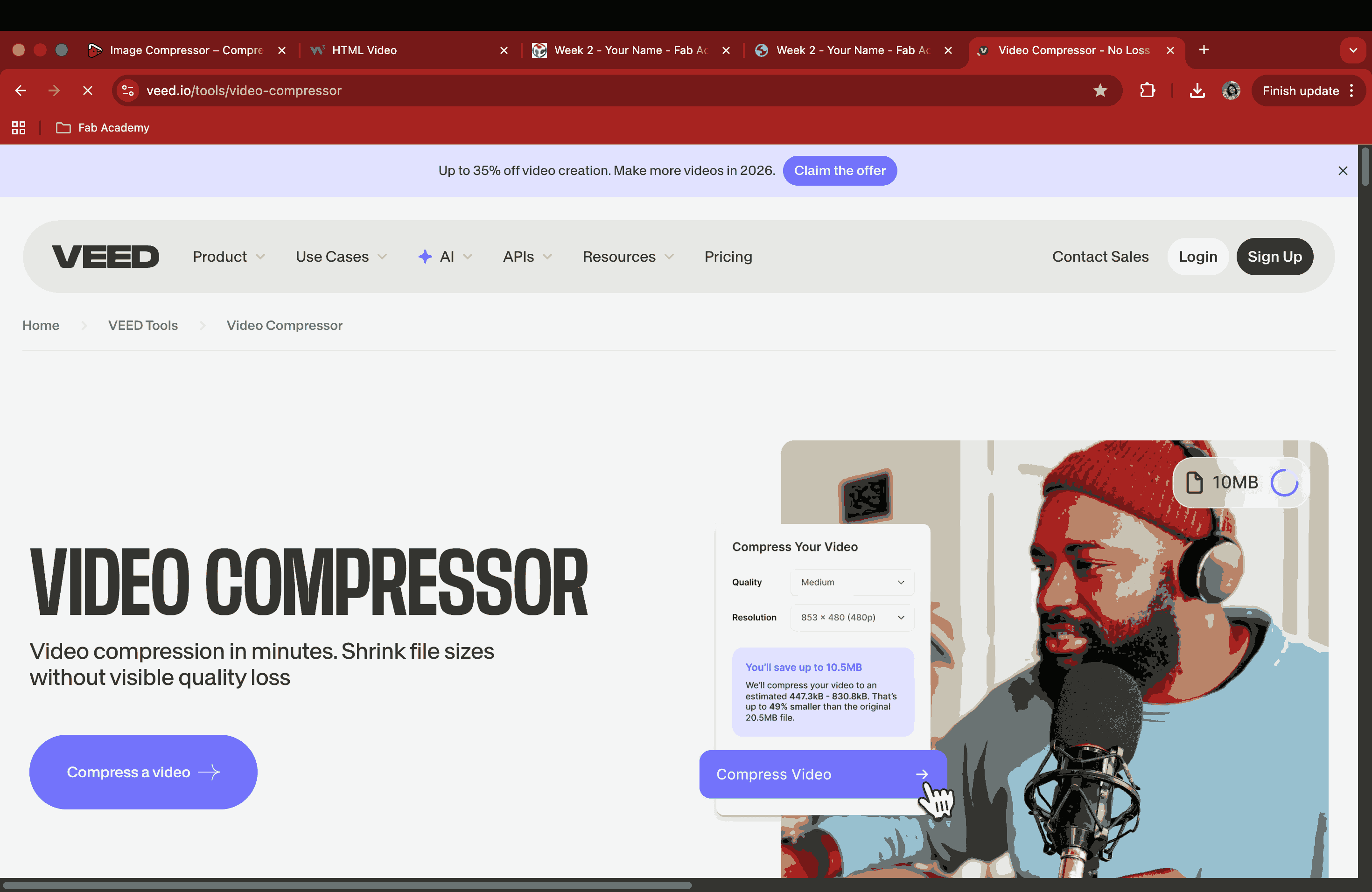 A video compressor called VEED was used to reduce the video size from 44 MB to 1.3 MB.
