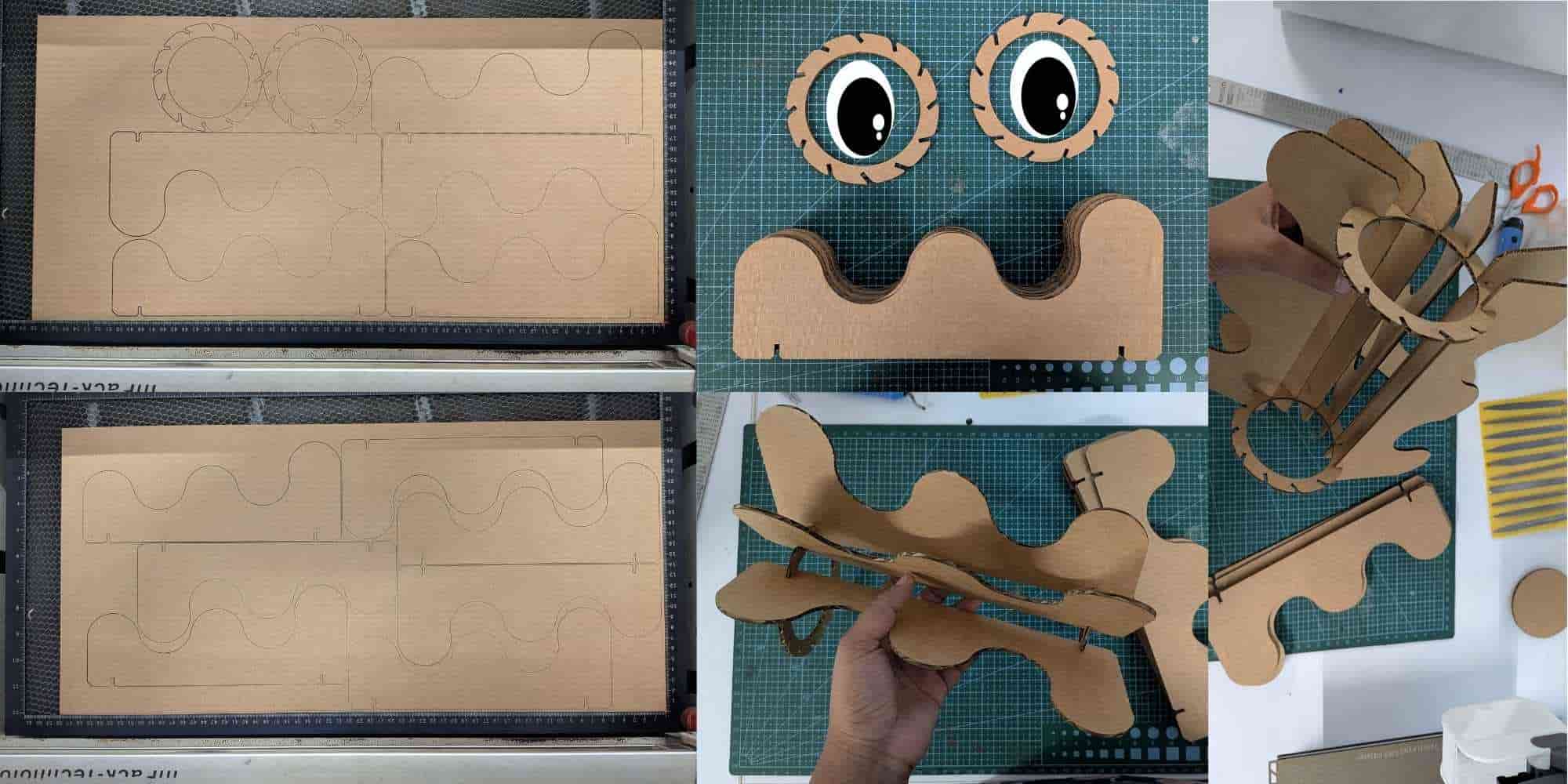 Through hands-on testing, I developed a clearer understanding of how parameters such as power, speed, and focus affect cutting and engraving performance. A key concept explored was kerf, the material width removed by the laser, which directly impacts press-fit assemblies. Before cutting, design files were color-coded using standard conventions to distinguish between cutting and engraving operations.