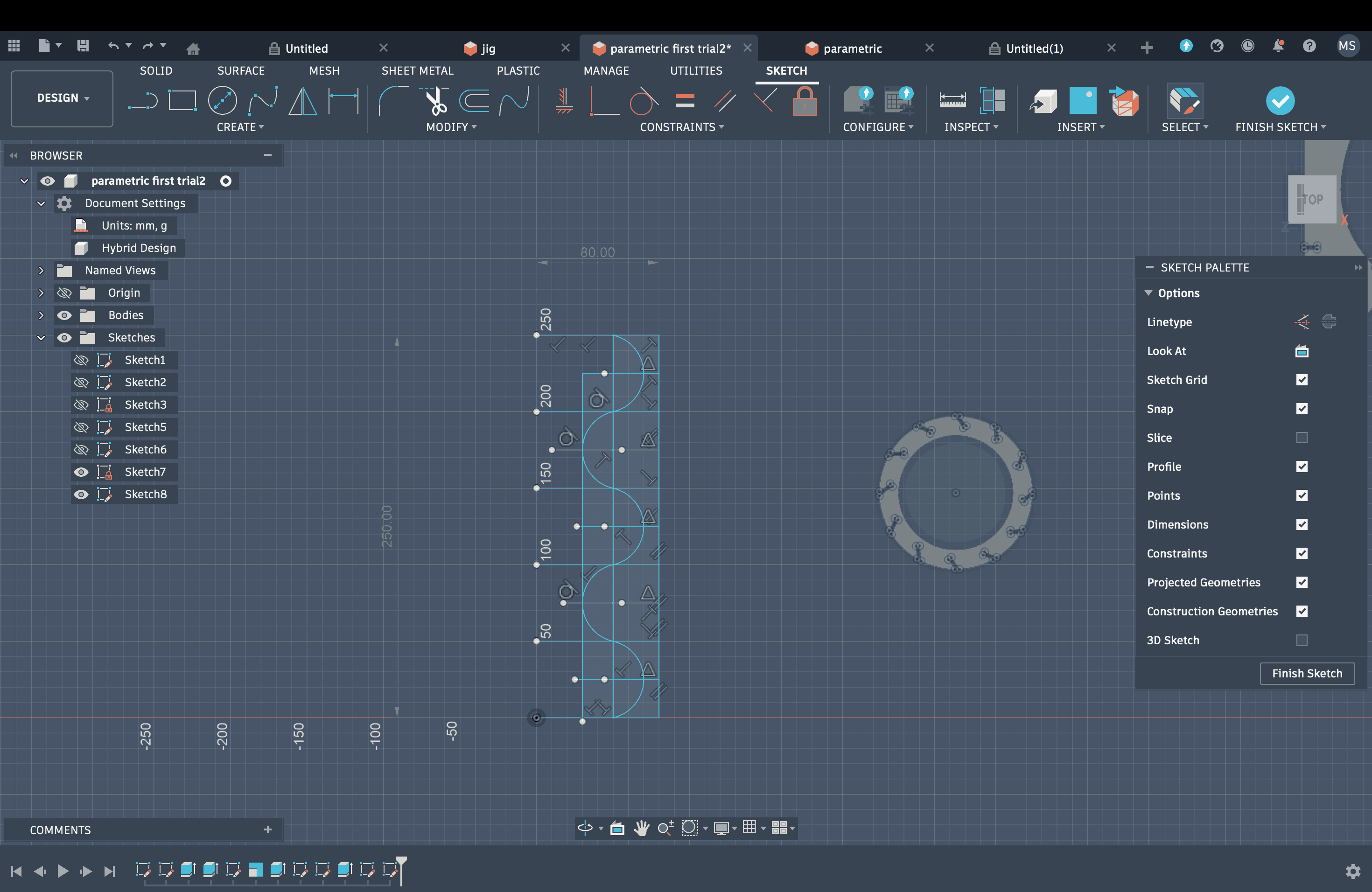 As a sample needs to be tested before finalizing the design and parameter values, I projected my sketches and exported them as a DXF file.