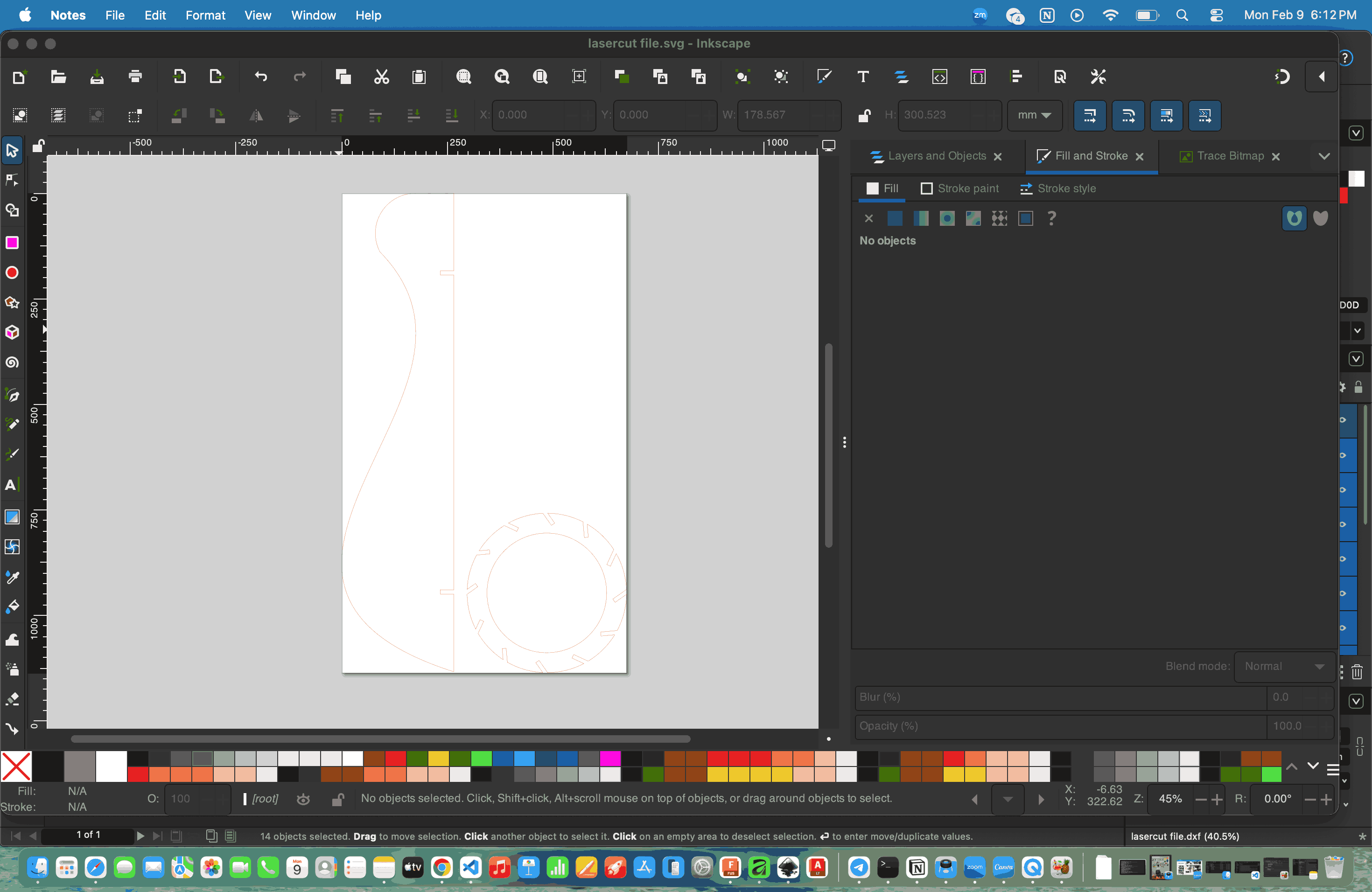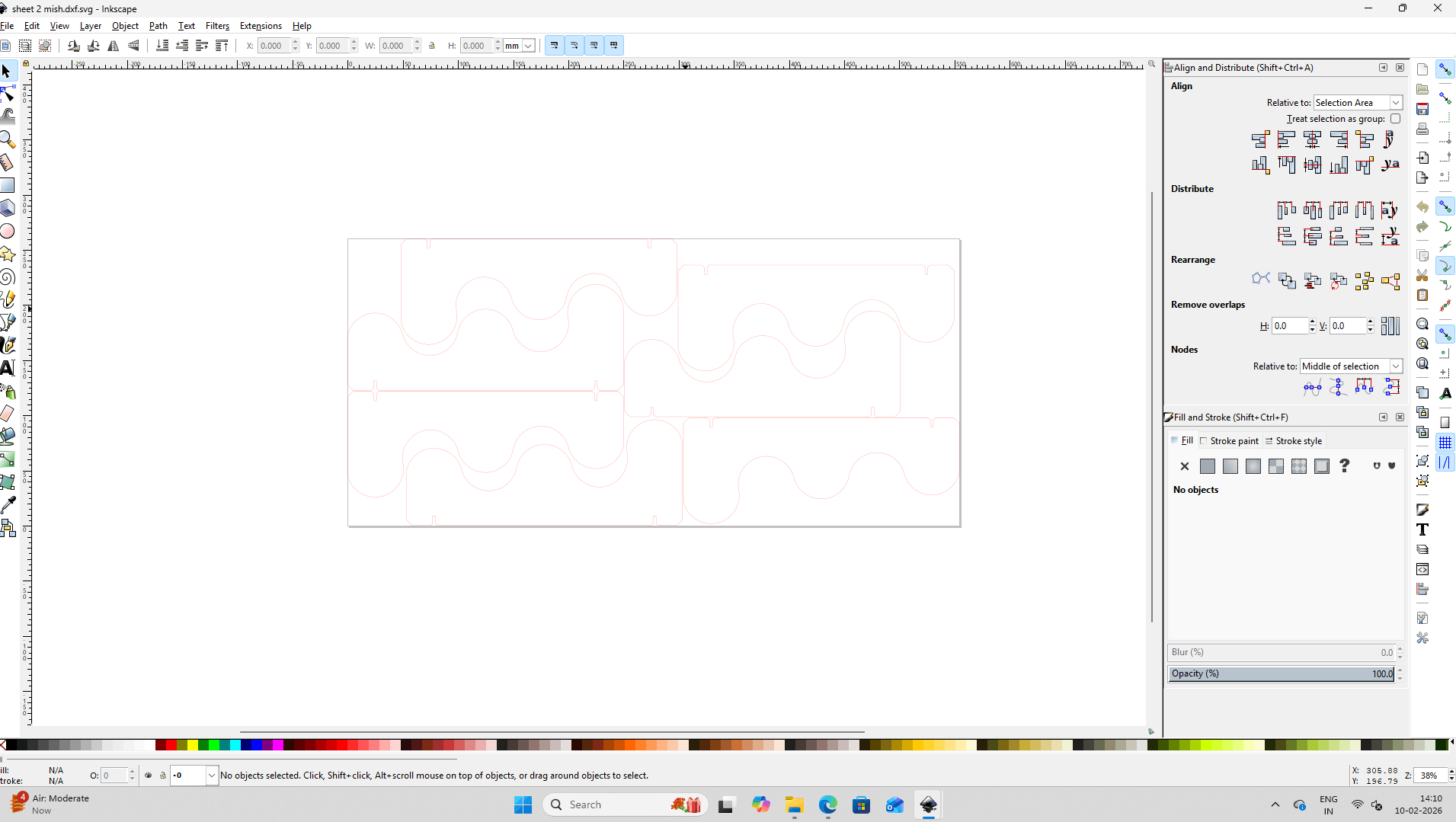 Opened the files on Inkscape, changed the fill to blank and stroke to 0.1 mm and color to red. Saved it as SVG and then send it to the system connected to Laser Cutting Machine using Send Anywhere.