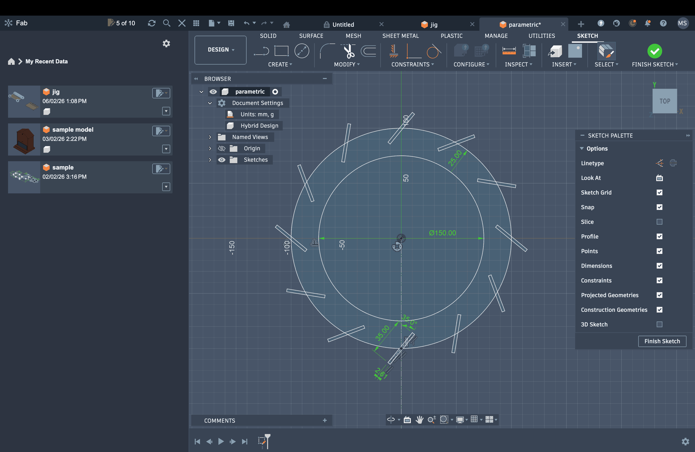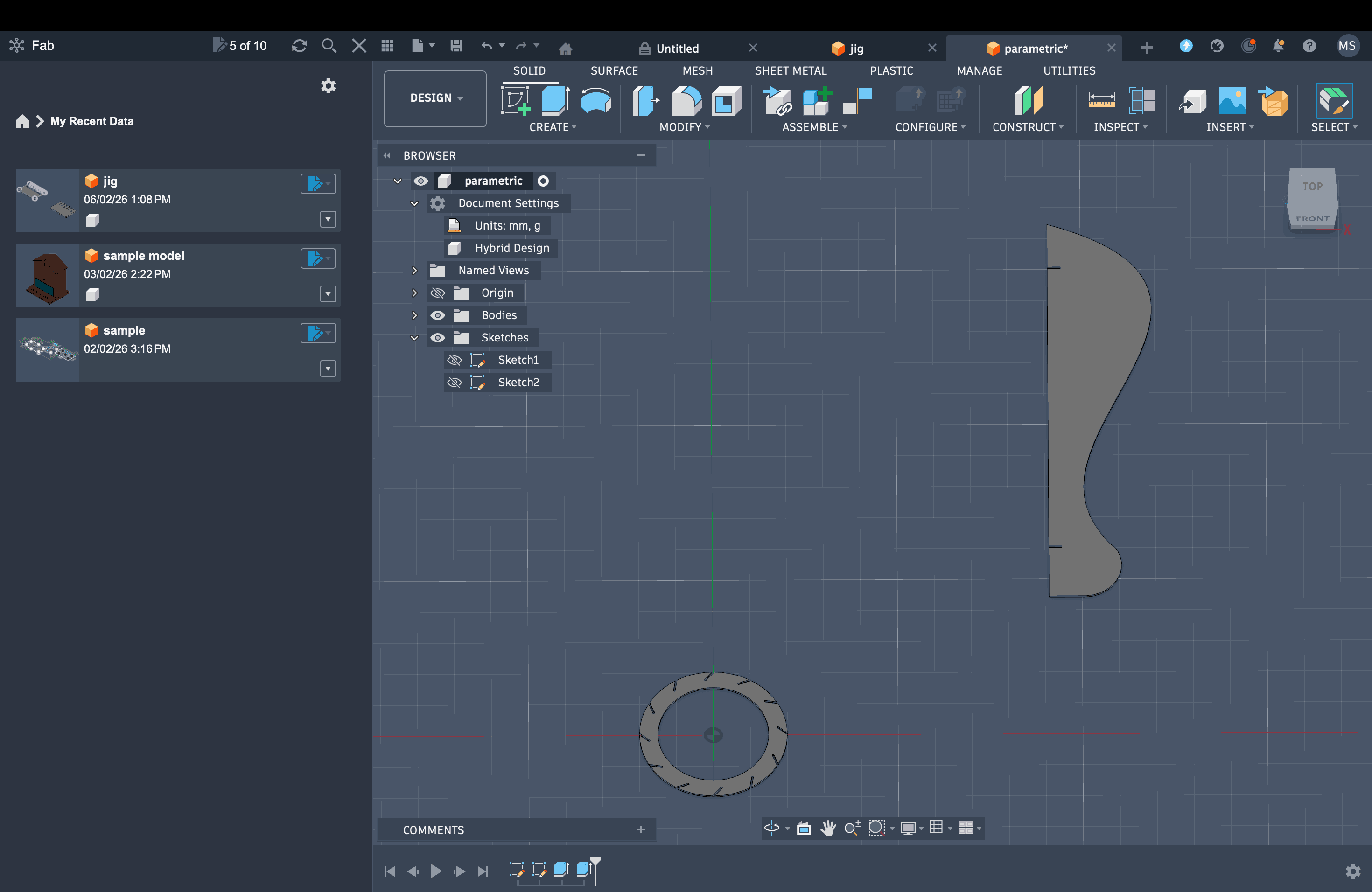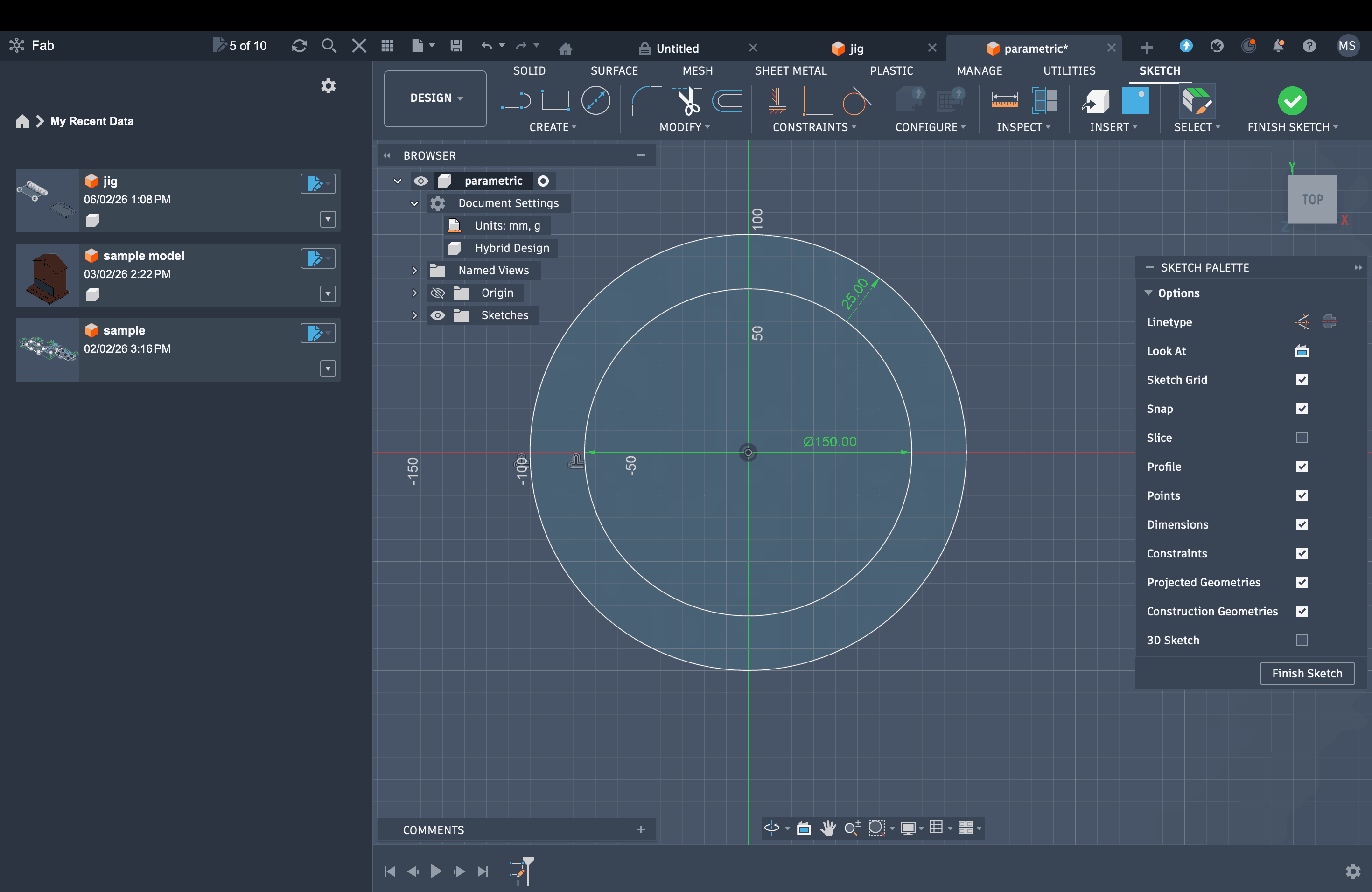 I started by sketching the basic component on Fusion 360, which in my case was a circle, and then created an offset.