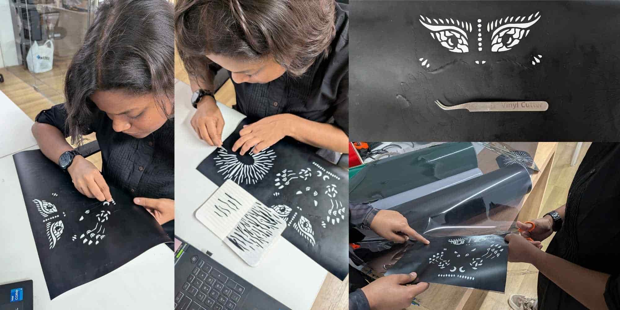 Like I mentioned before, I do have experience with hand-cut paper illustrations. But the thing with doing it manually is that it takes a lot of time, tests your patience, questions your choices, and sometimes even your existence, just kidding. With the vinyl cutter, everything became ten times easier. It would normally take me a good 30 minutes to finish one paper-cut illustration, but this time it hardly took me 10 minutes to peel off the excess vinyl and transfer the final sticker. I guess this is where technology really comes into play, to make our lives better, faster, and easier without compromising our skill. I would actually encourage everyone to design intricate patterns because the vinyl cutter will handle the cutting for you. So why compromise on the pattern? The entire process was not just satisfying, but also a lot of fun. I would do this a hundred times again!