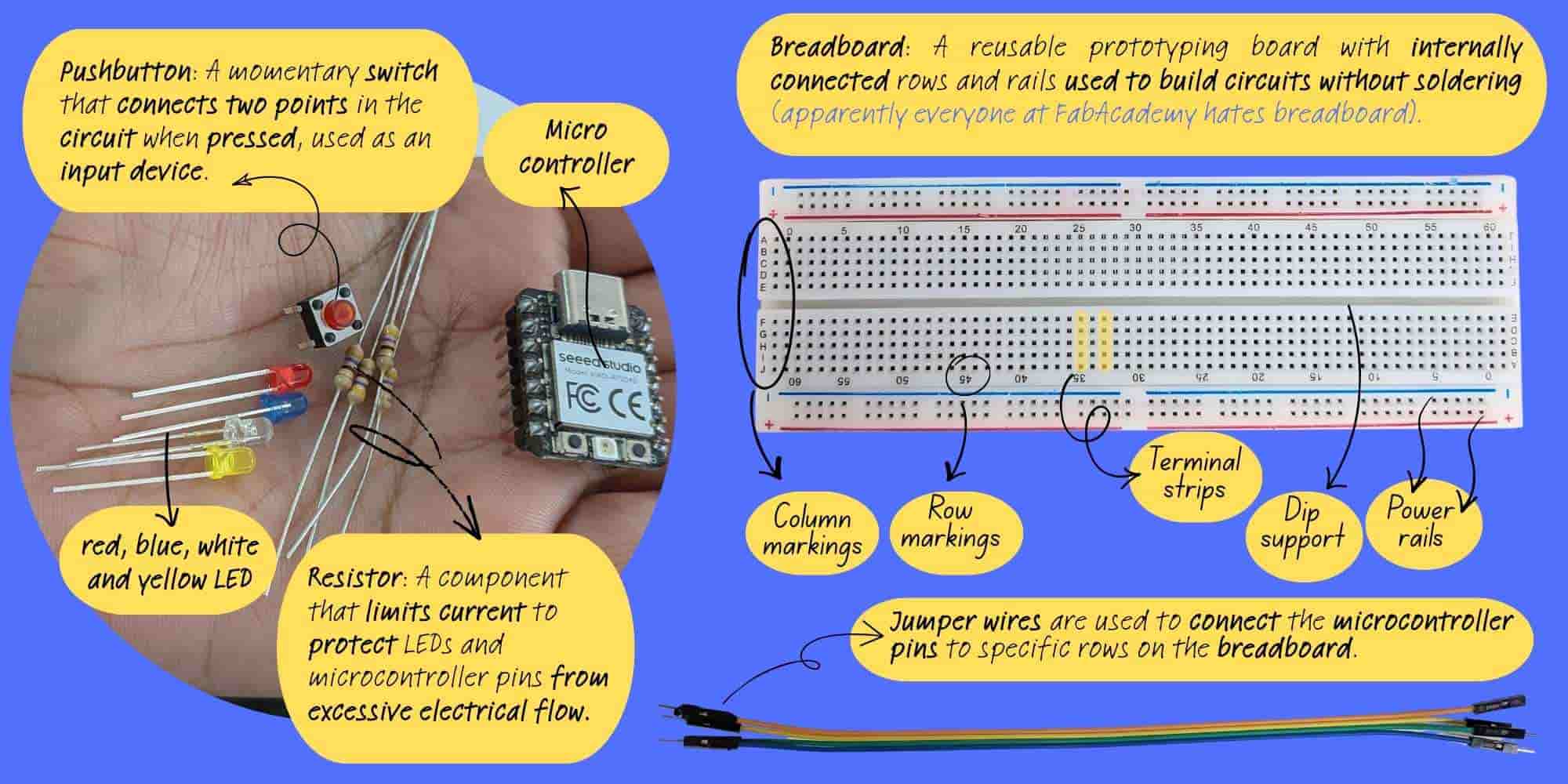 The last time I wrote any code was around 12 years ago in school. I never used it again after that. So this week felt strange in two ways: I was excited to finally use coding in a real, physical way, but at the same time I felt like I was starting from zero. On top of that, I have never worked with electronics before. So I wasn’t just revising programming, I was learning how electricity behaves, what resistors do, and why hardware can break if wired incorrectly. Because of that, I needed to understand the vocabulary before I could understand what I was actually doing. Here are the terms that became meaningful to me this week.