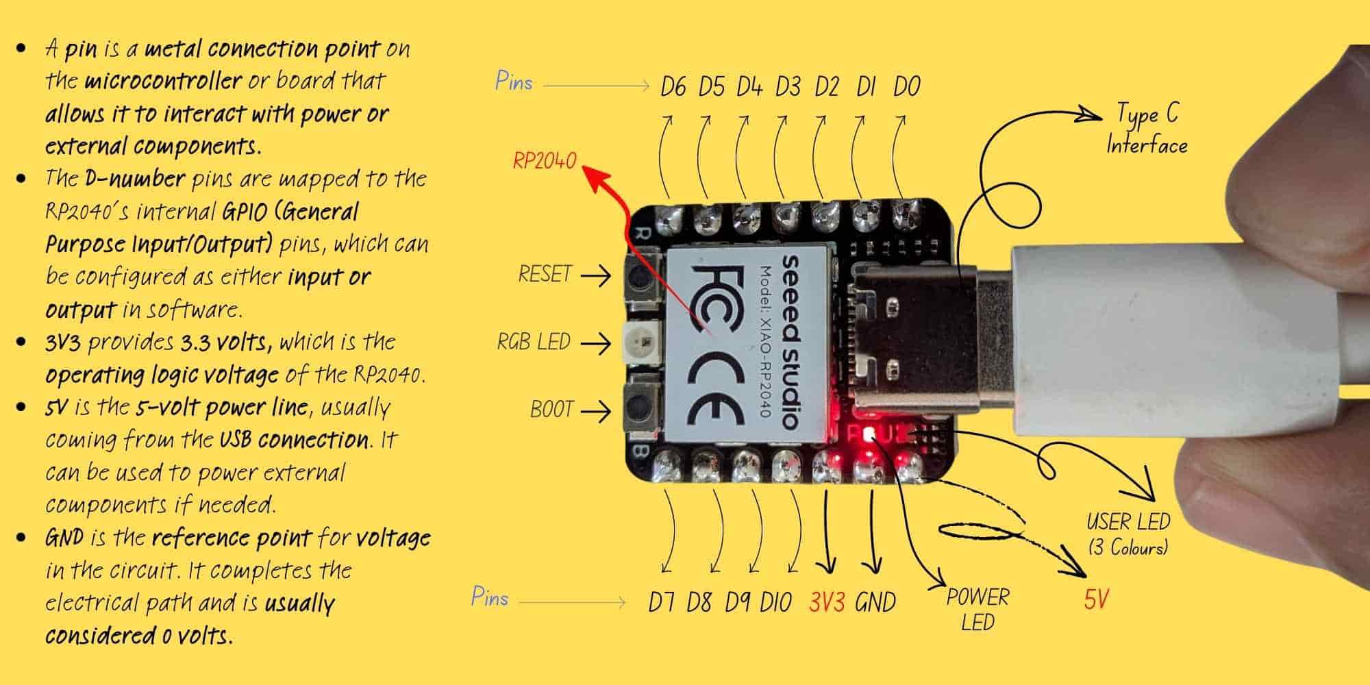 MicroPython is a version of Python made for microcontrollers. It allows us to write simple Python code and run it directly on small boards like the Seeed Studio XIAO RP2040.