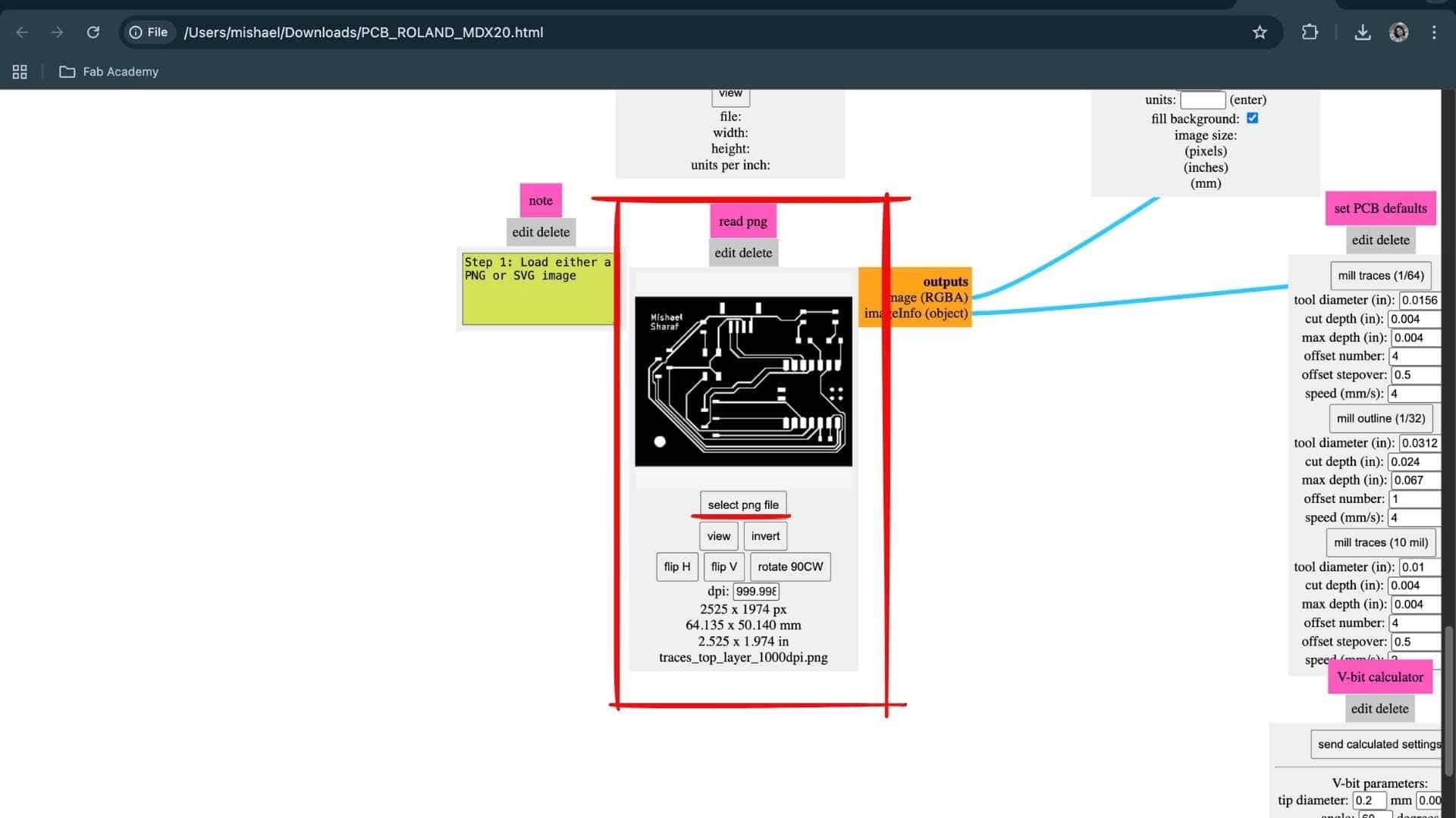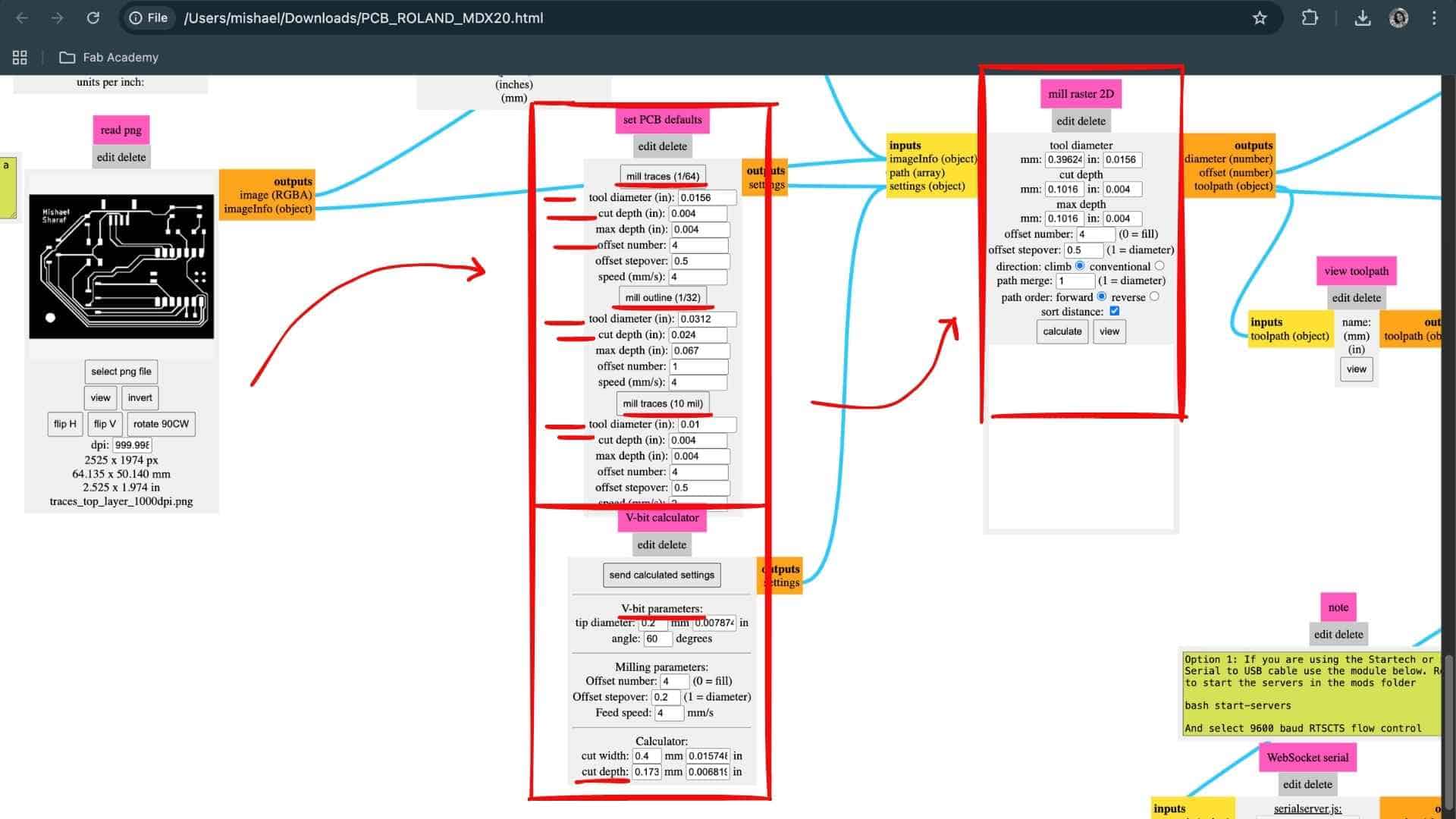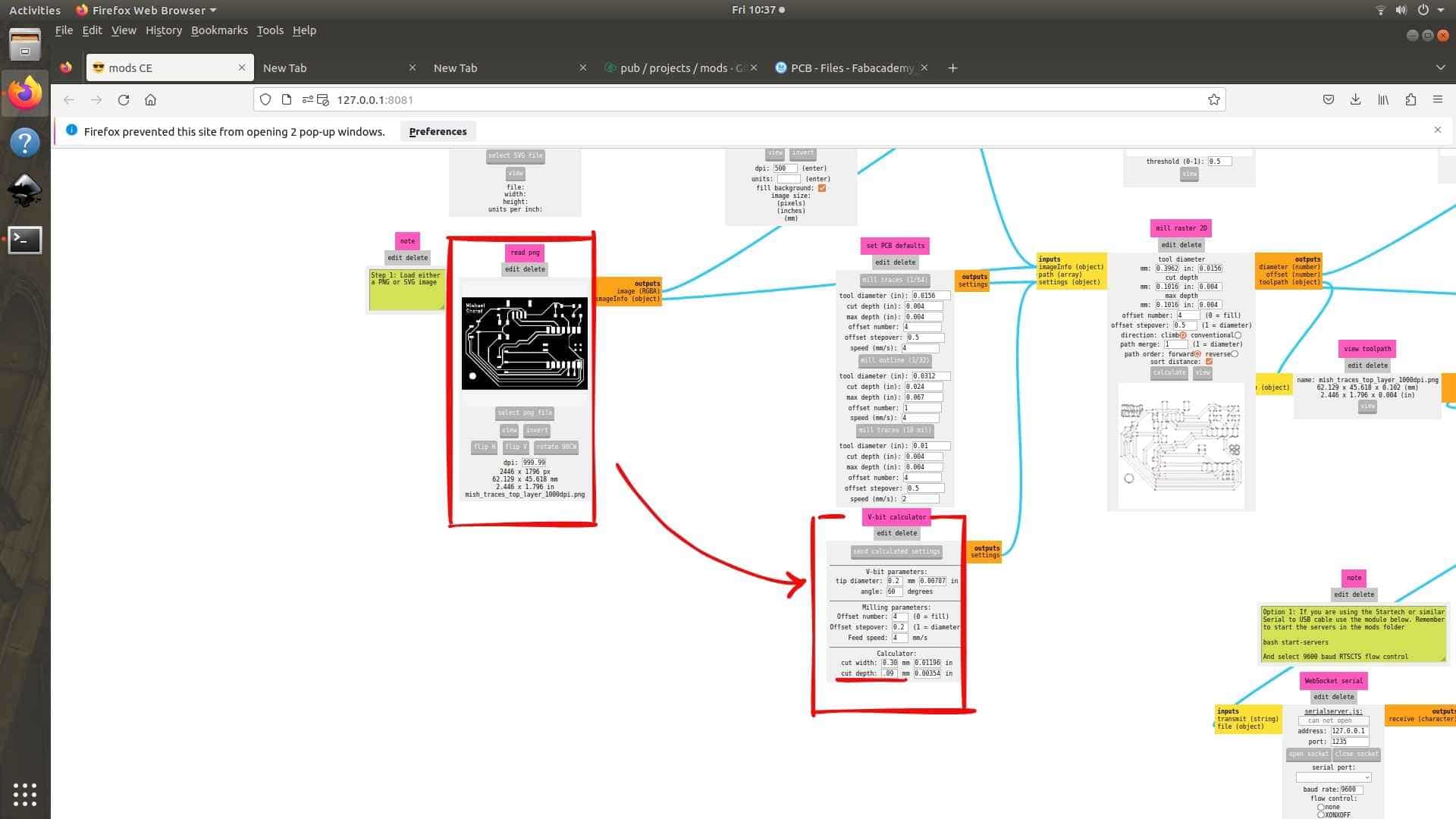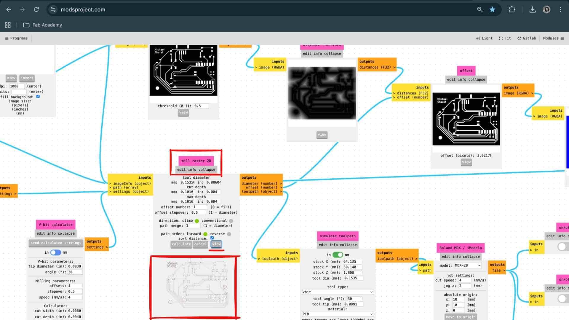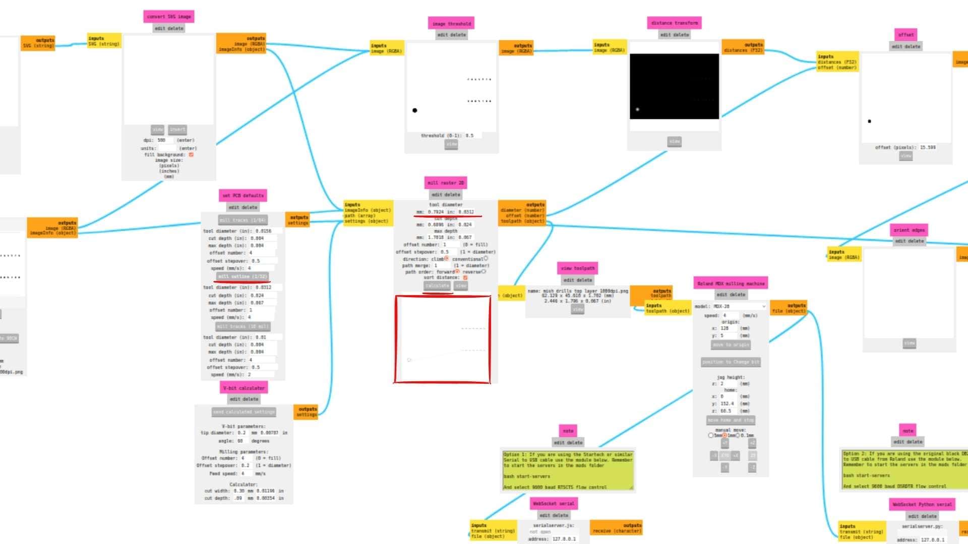 In this case, Mods was used to convert the exported PNG trace and outline files into toolpaths for the milling machine.