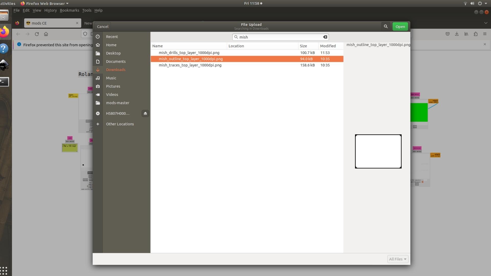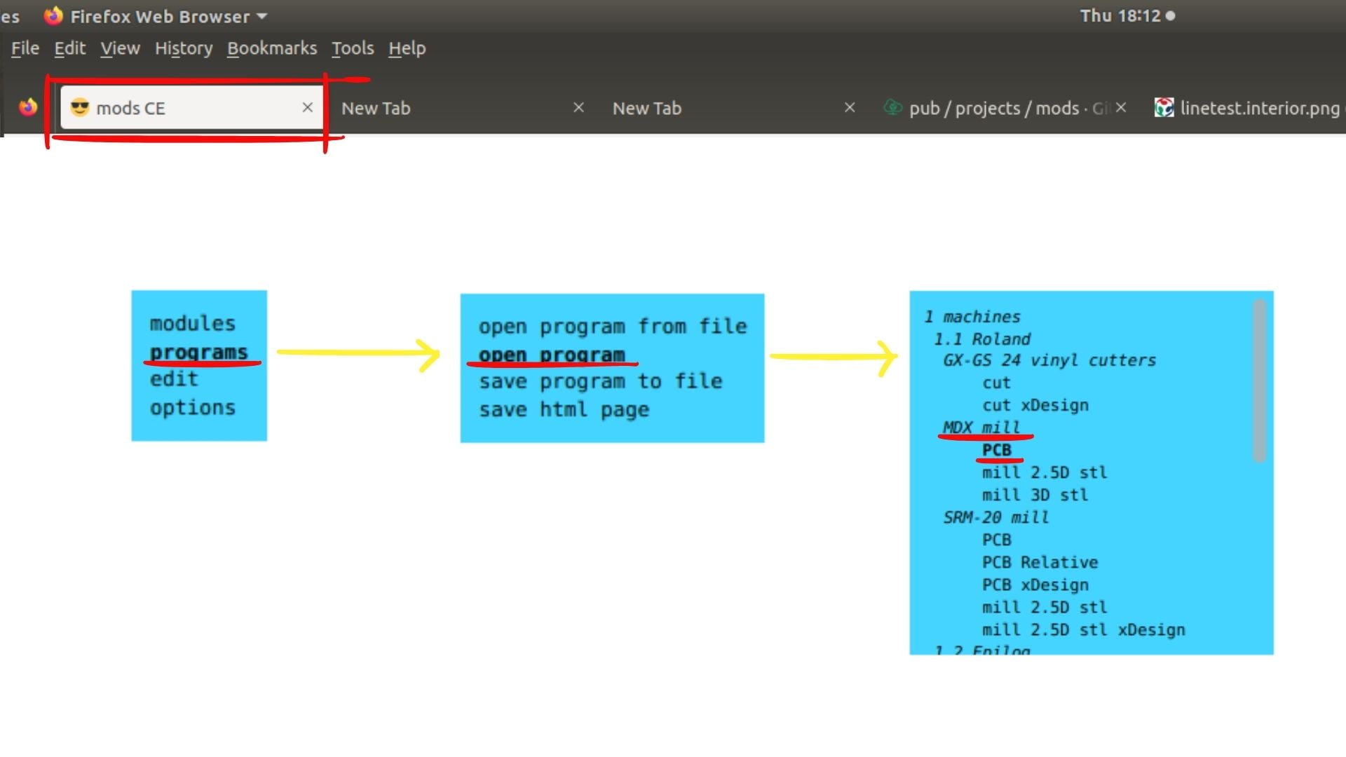 Mods can be accessed directly through a web browser. After opening the Mods interface, the PCB milling program is loaded.