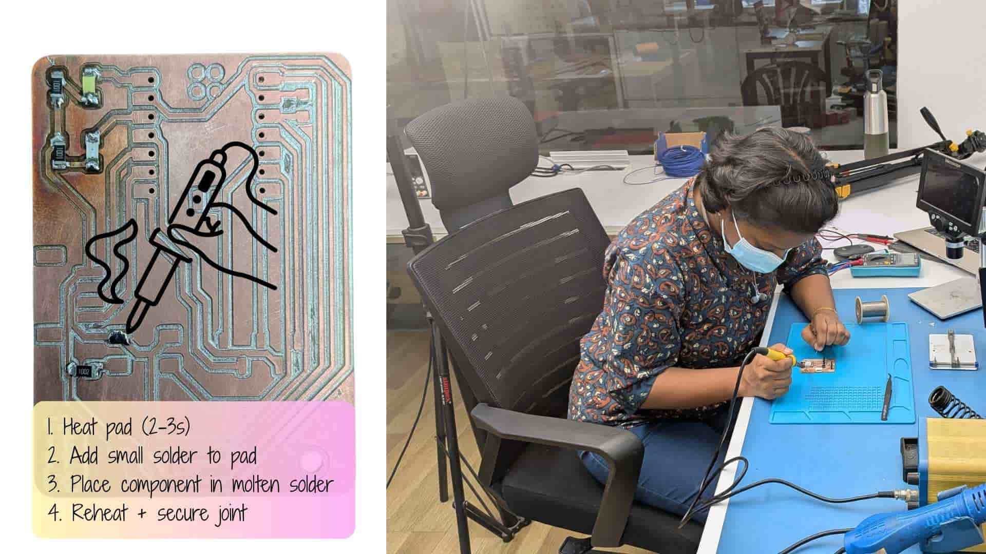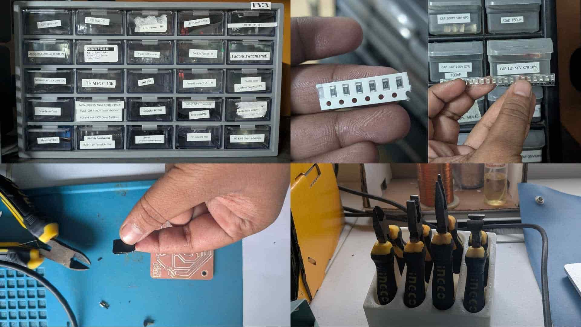 After collecting all the components, I moved to the soldering station where a short refresher session on surface-mount soldering was given before assembling the PCB.