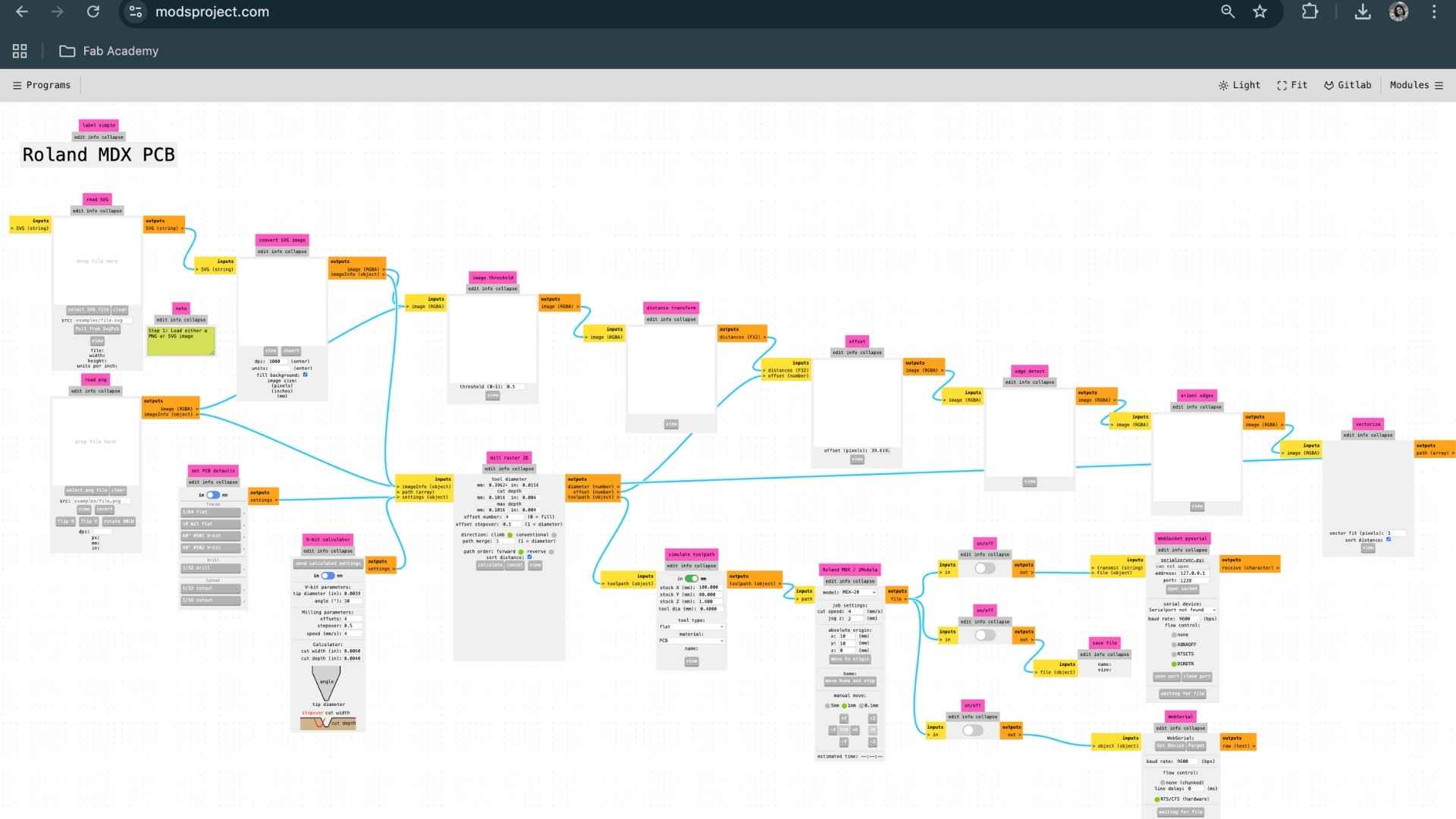 Mods is a modular, browser-based software environment developed at MIT. It is commonly used in Fab Labs to convert PCB design files into machine instructions (G-code or RML) that can be executed by desktop PCB milling machines.