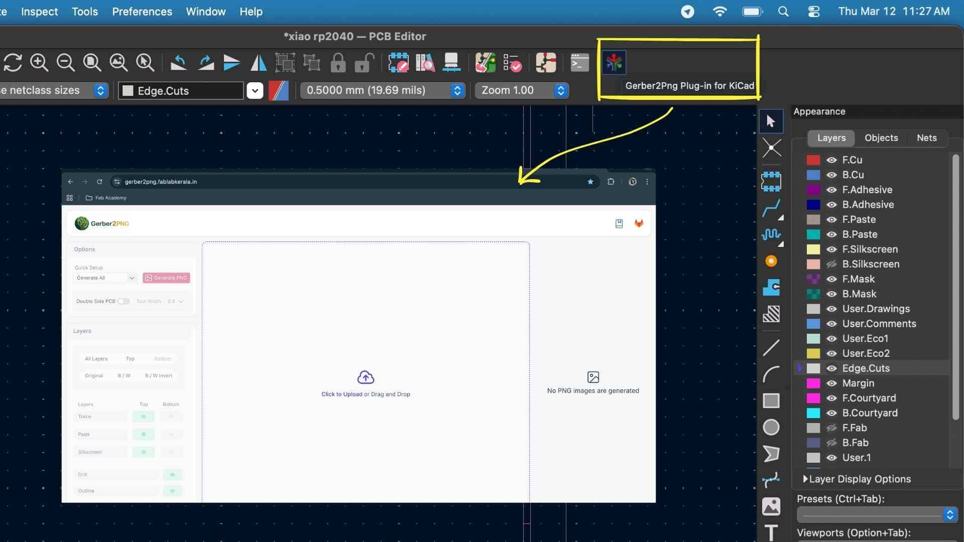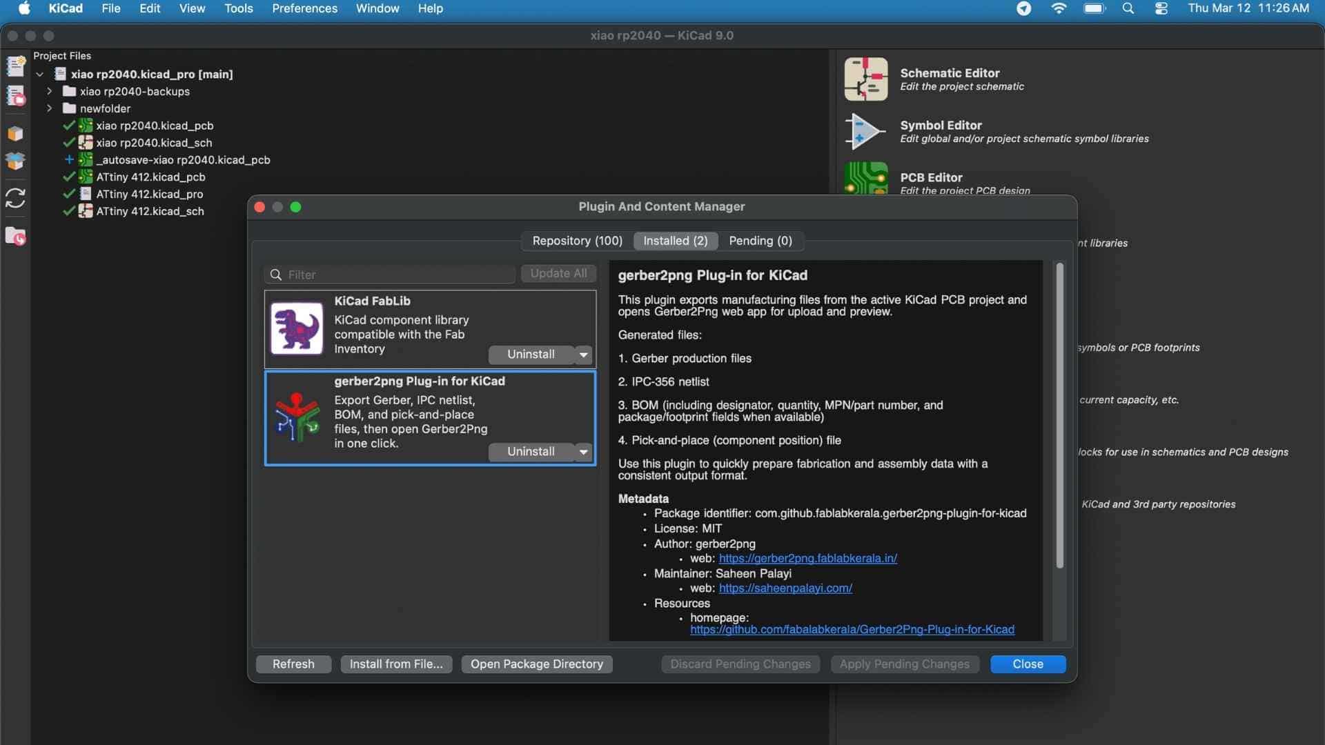 The Gerber2PNG plugin was installed in KiCad to convert PCB fabrication files into PNG images suitable for the PCB milling workflow used in the lab.