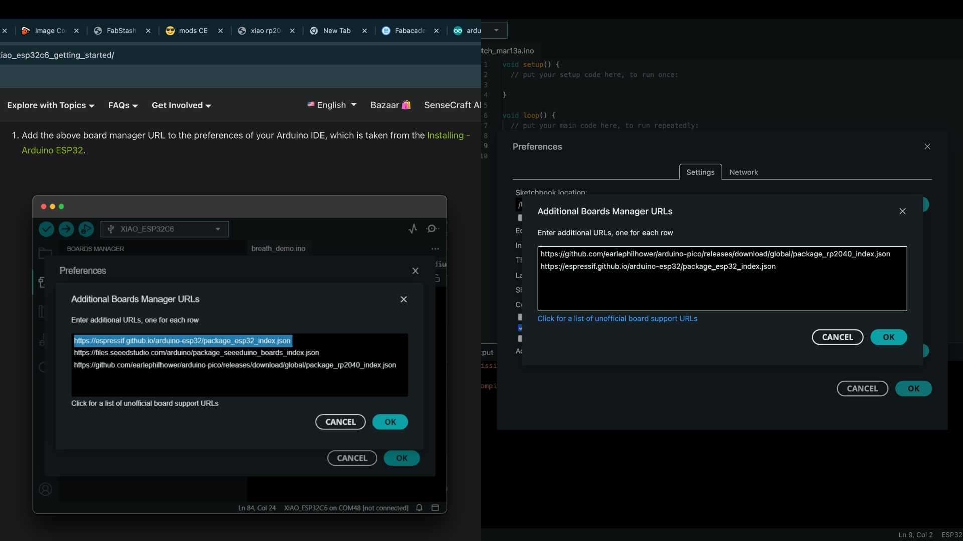 This board used the Seeed Studio XIAO ESP32C6, which required a different setup from the Seeed Studio XIAO RP2040 that I had previously used.