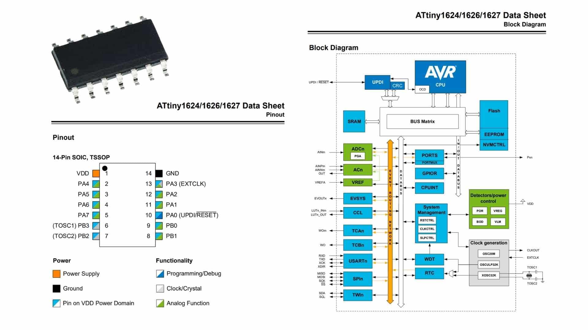 Overall, the ATtiny1624 is well-suited for low-cost, space-constrained, and low-power embedded systems, especially where moderate processing and peripheral integration are required.