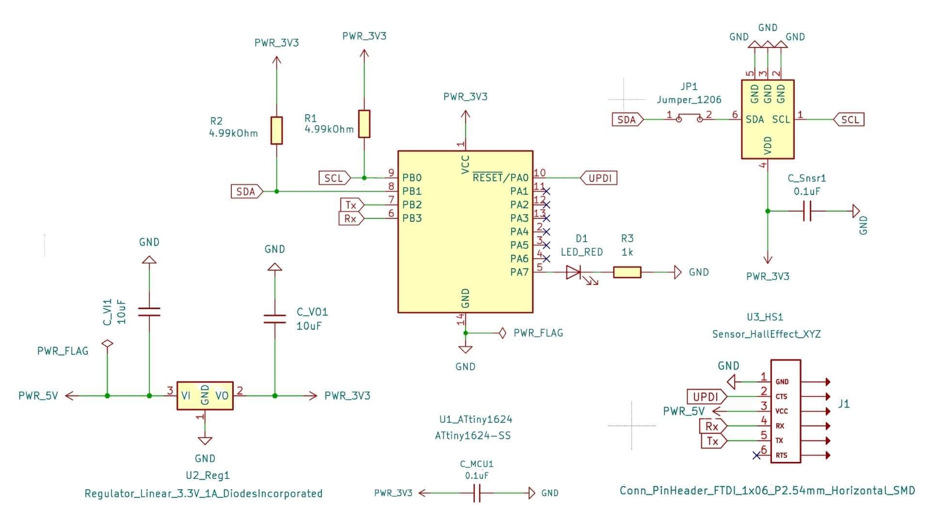I interfaced a TLE493D-A2B6 with my ATtiny1624 using I²C and used a USB–UART/UPDI converter for programming and serial monitoring. I initially used Neil’s code to test the sensor, but I couldn’t clearly understand what was being displayed in the Serial Monitor, as it was not in a human-readable format.