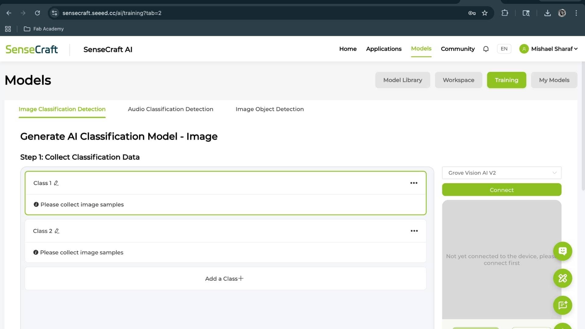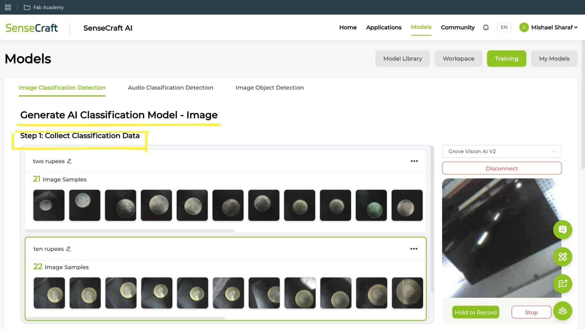 Trained a classification model using Grove Vision AI V2 pipeline