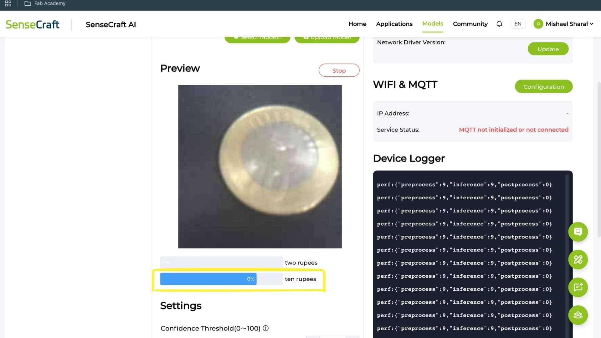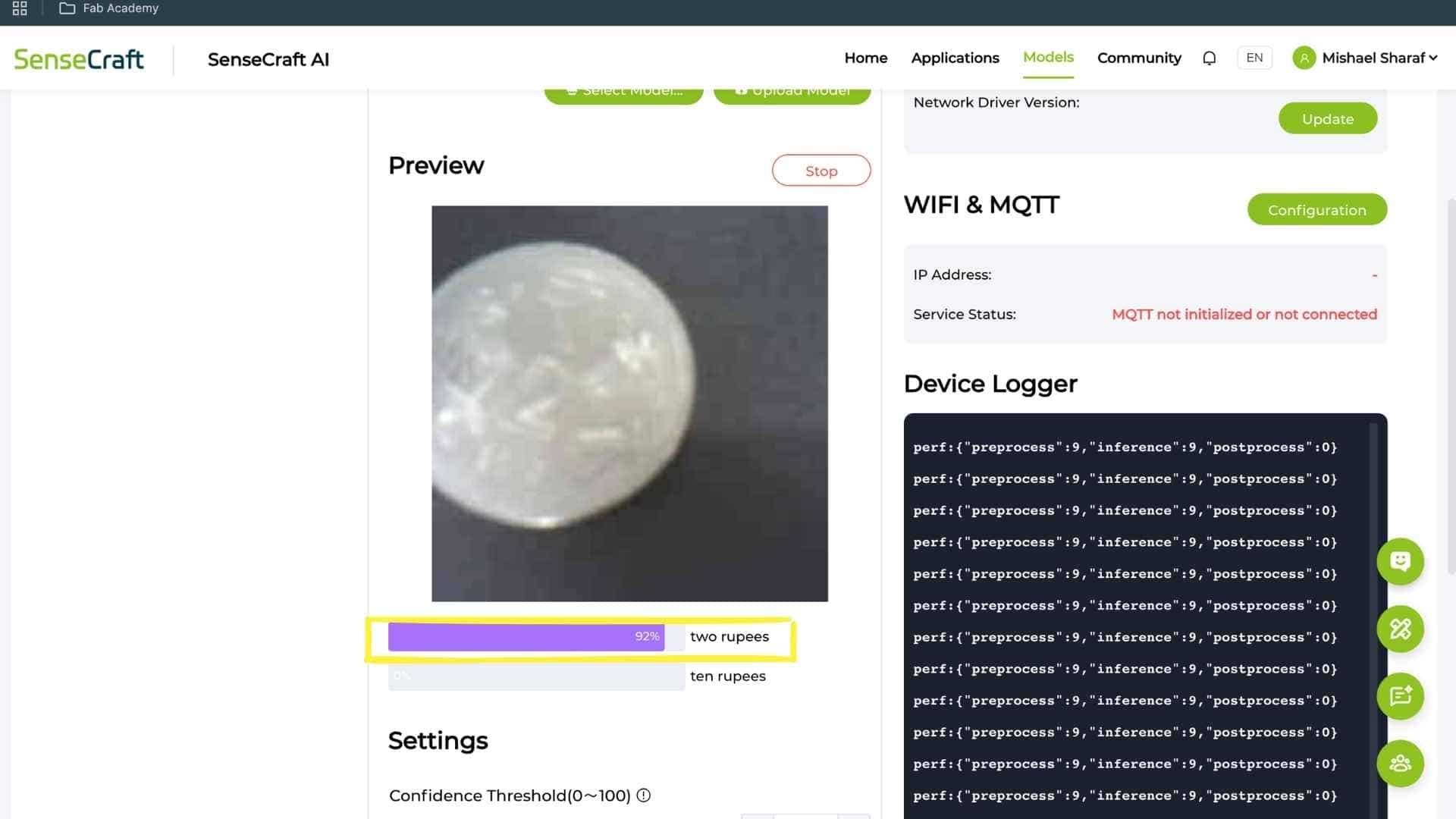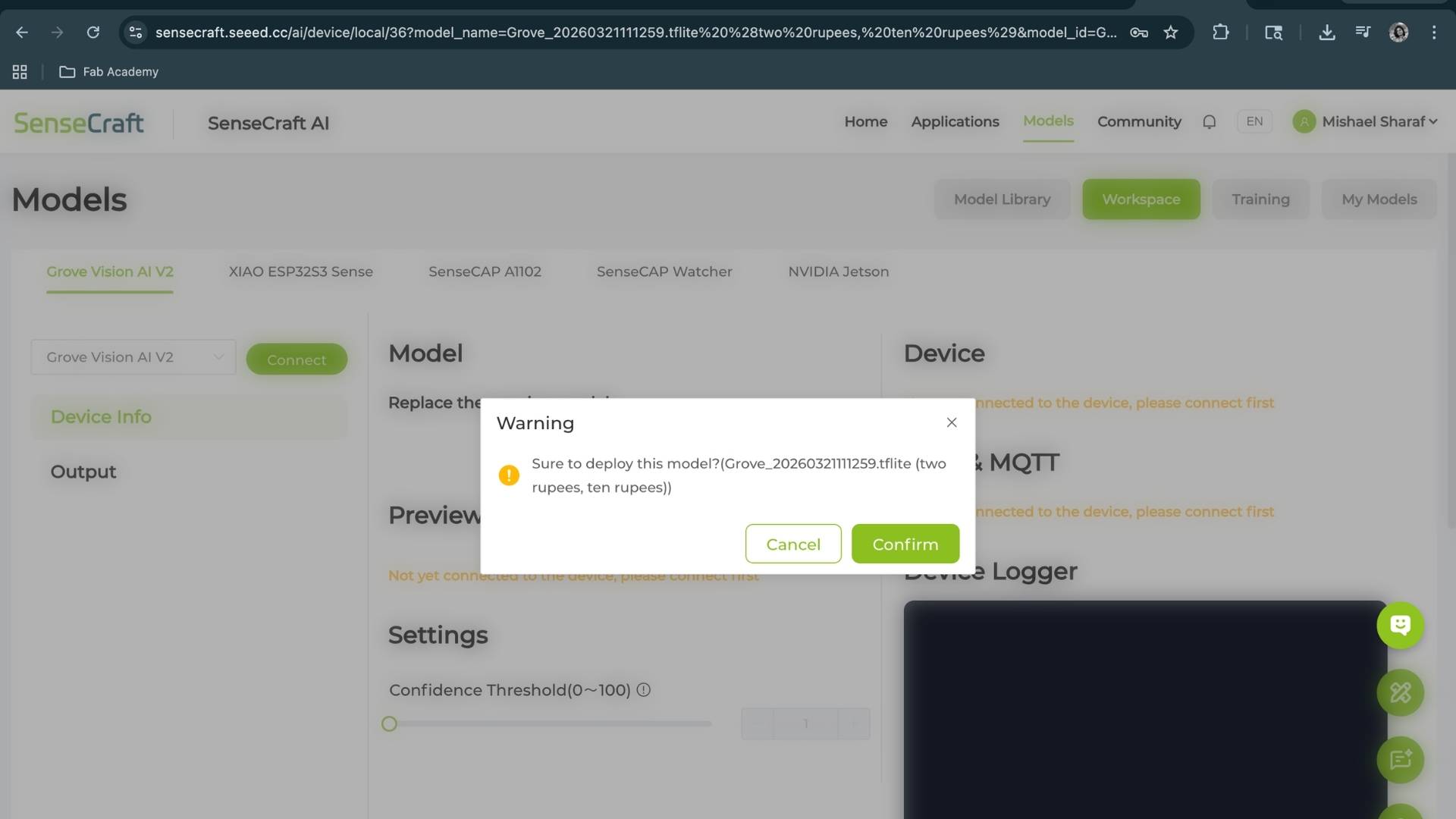 Deployed the trained .tflite model to the device