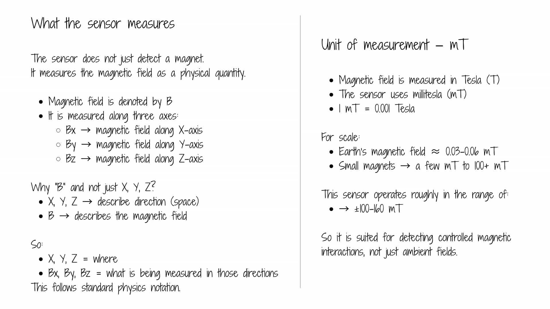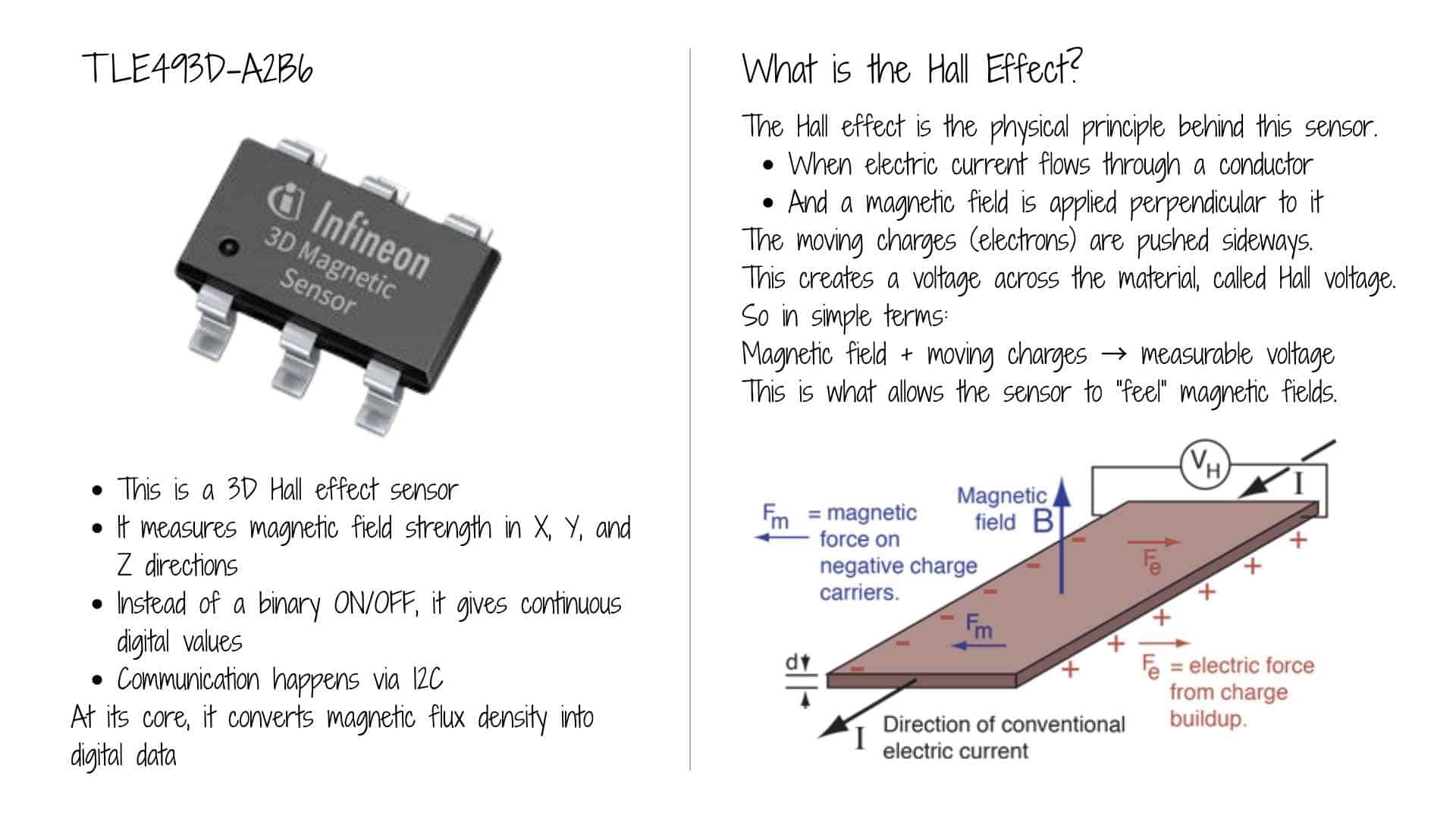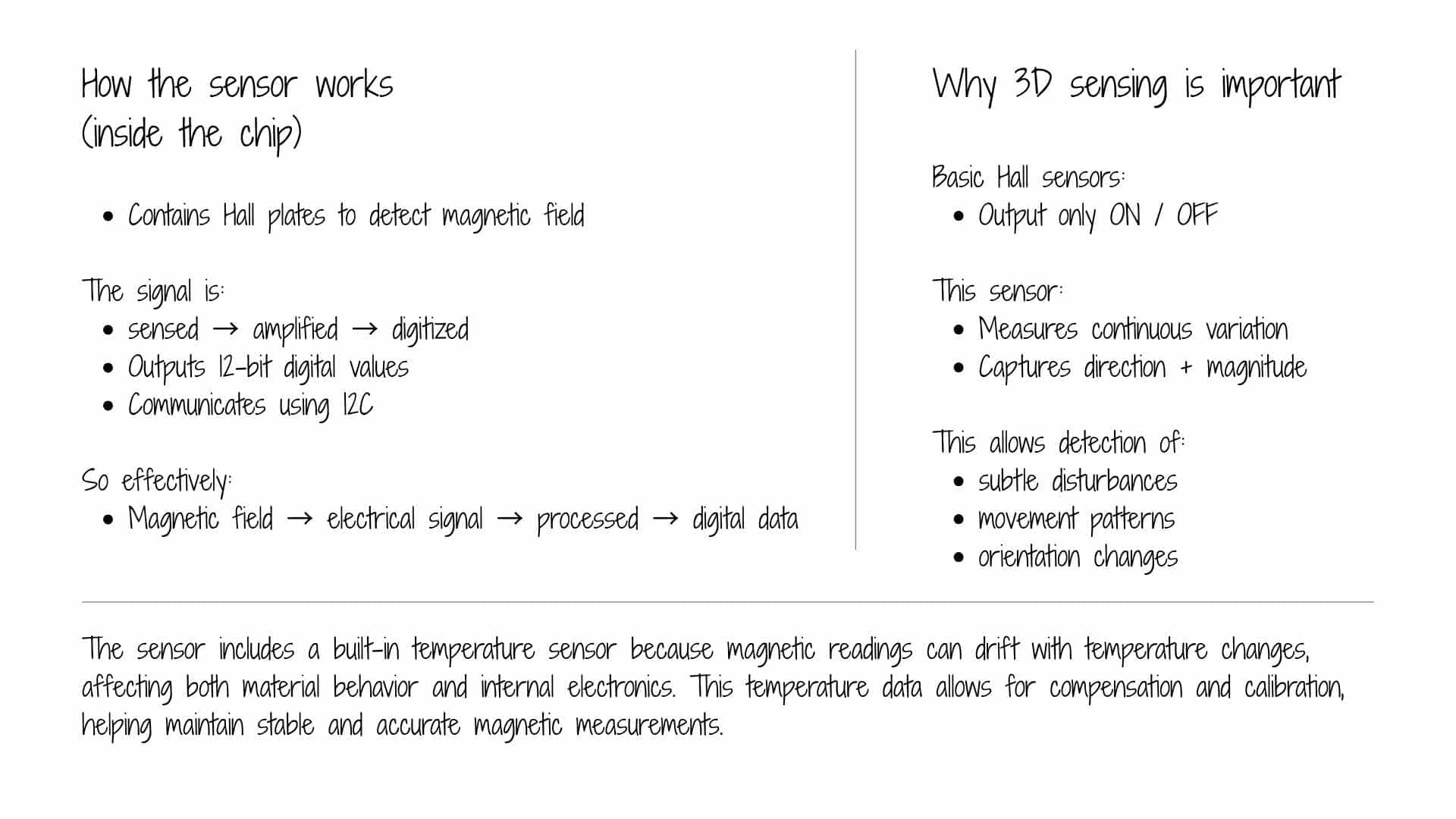 A vector Hall sensor was chosen to explore magnetic disturbance as a measurable input, rather than just detecting the presence of a magnetic field.