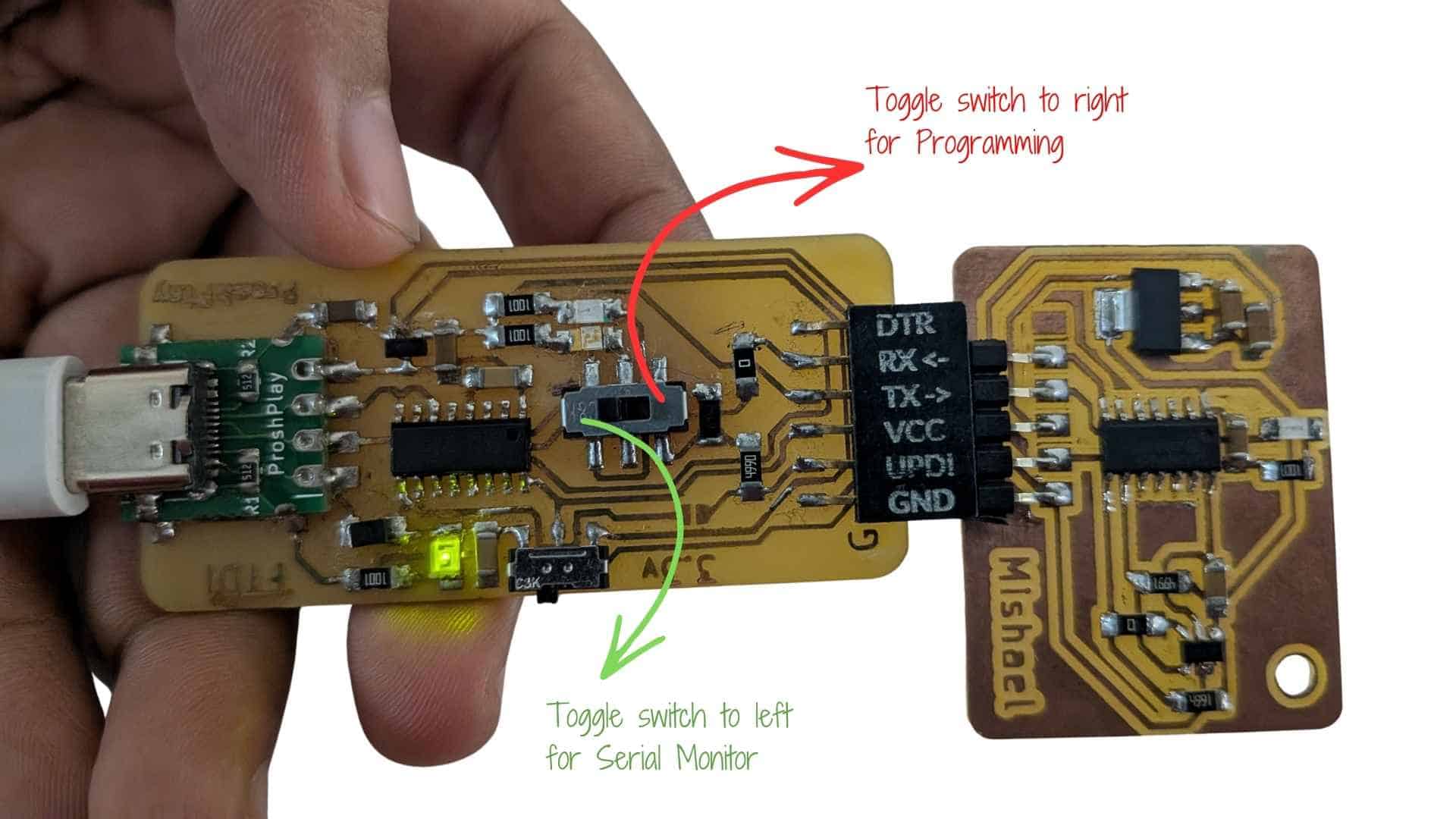 Because both functions share the same USB interface, the board requires switching between modes (hardware-level routing).